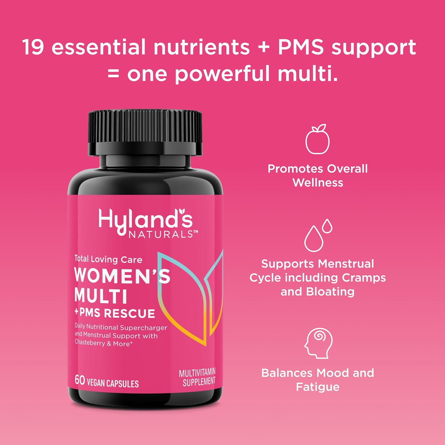 Hyland'S Total Loving Care Multivitamin For Women And Pms Rescue, 60 Vegan Capsules With L-Theanine For Focus And Stress Relief Support With Chasteberry And Dong Quai For Menstrual Support