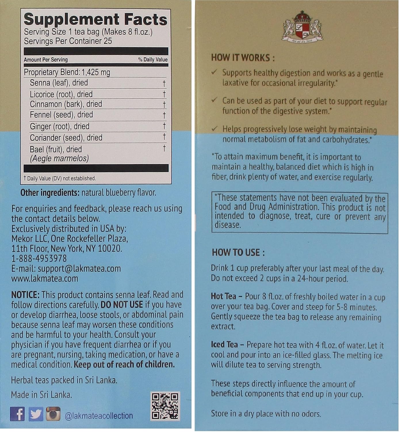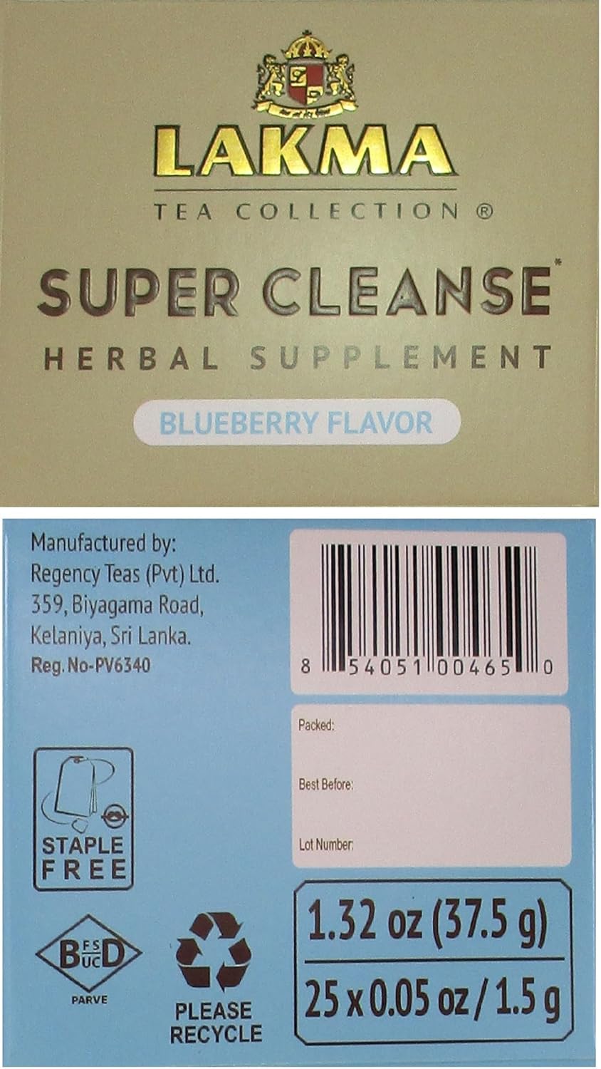 Gentle Detox: Lakma Super Cleanse Blueberry Flavor is a gentle and effective blend of senna leaf, licorice root, cinnamon bark, fennel seed, ginger root, coriander seed, bael fruit, and natural blueberry flavor, designed to support a healthy and natural cleanse