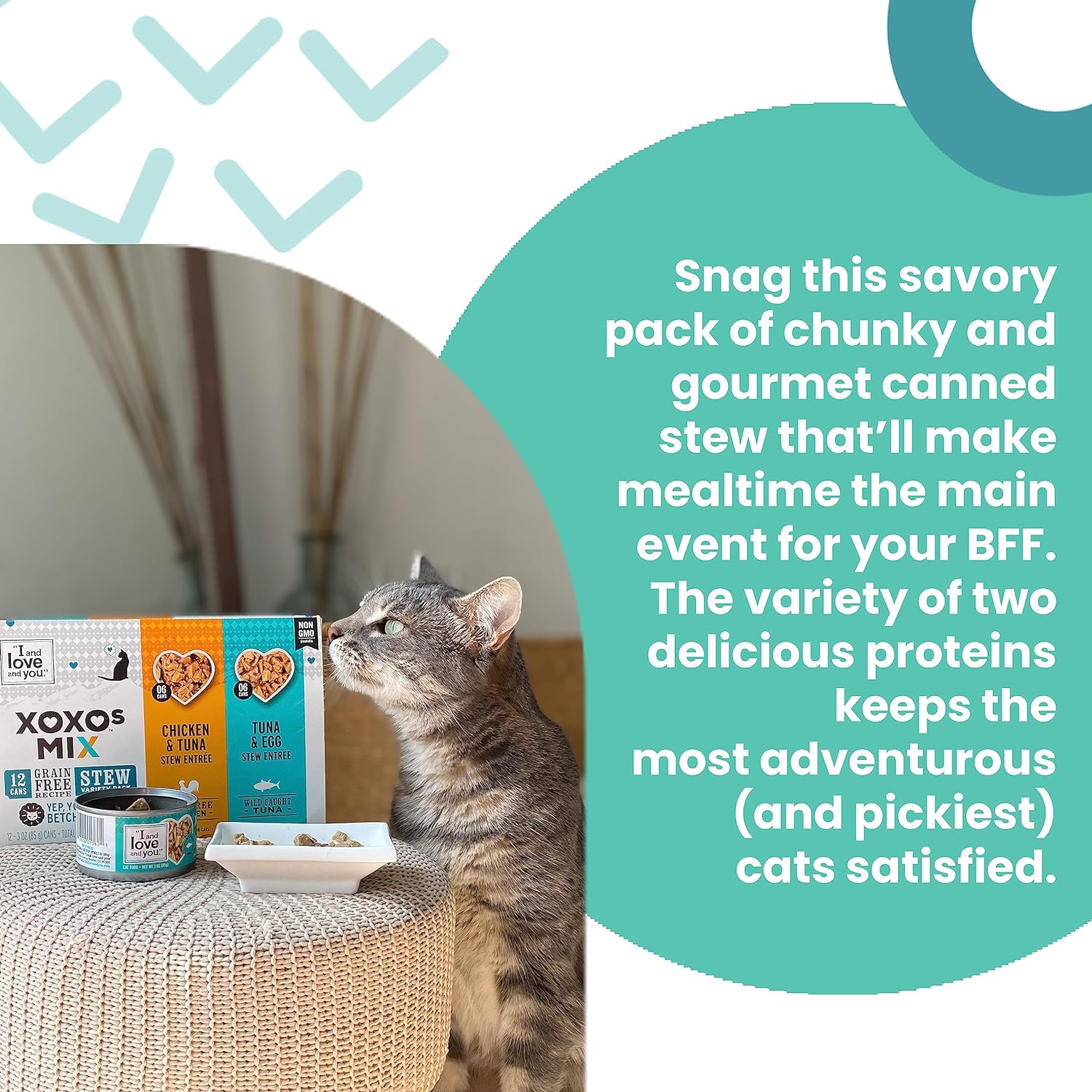 I And Love And You" Xoxos Canned Wet Cat Food, Chicken And Tuna/Tuna And Egg Stew, Grain Free, Real Meat, No Fillers, 3