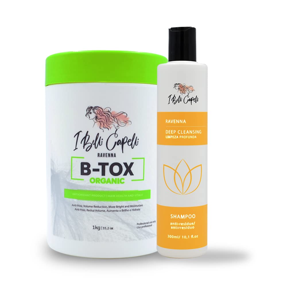 I Belli Capelli Ravenna Kit B-tox Organic 1kg/35.02 oz + Anti-residue Shampoo Deep Cleansing 300ml/10.1 fl.oz