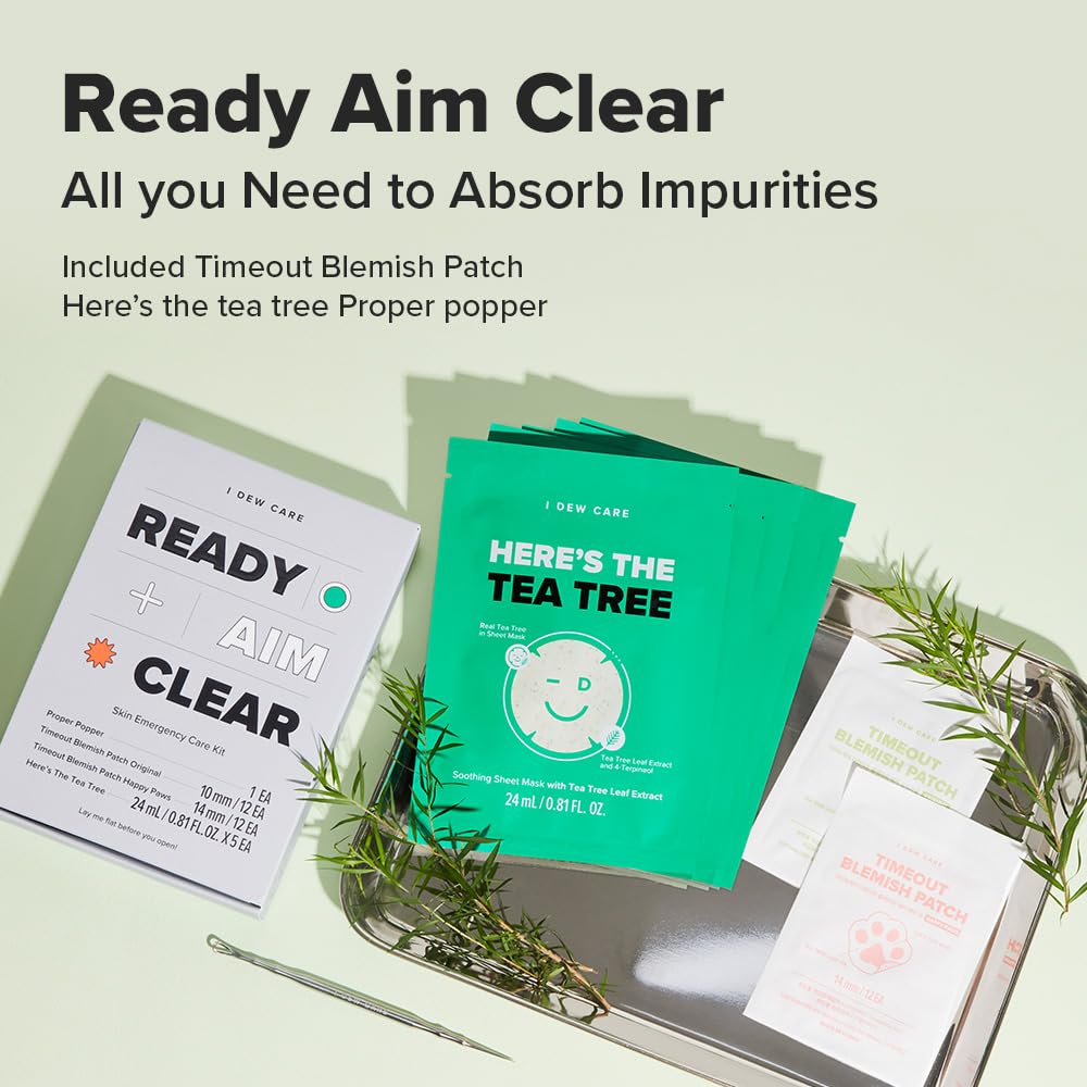 I Dew Care Blemish Skincare Set - Ready Aim Clear | Face Mask & Acne Patch & Pimple Popper Tool, With Tea Tree Oil, Soothing & Hydrating, Treatment, Oily & Sensitive Skin