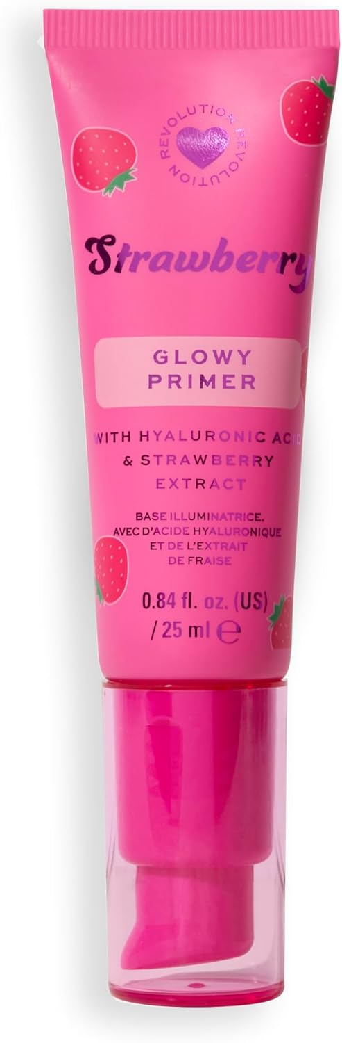 About this item DEWY GLOW: Infused with hyaluronic acid and strawberry extract, this primer leaves your skin with a juicy, radiant glow, ideal for a fresh, dewy look LIGHTWEIGHT FORMULA: The subtle shimmer formula is ultra-lightweight, giving your skin a luminous look without feeling heavy SKIN-NOURISHING INGREDIENTS: Hyaluronic acid deeply hydrates, while strawberry extract helps brighten your complexion HOW TO USE: Wear alone for a natural radiance or apply under makeup to achieve a dewy glow that lasts all day CRUELTY-FREE & VEGAN: This I Heart Revolution product is formulated without any animal-derived ingredients making it Vegan friendly. All Revolution products are backed by PETA as being Animal Test Free › See more product details,DEWY GLOW: Infused with hyaluronic acid and strawberry extract, this primer leaves your skin with a juicy, radiant glow, ideal for a fresh, dewy look,LIGHTWEIGHT FORMULA: The subtle shimmer formula is ultra-lightweight, giving your skin a luminous look without feeling heavy,SKIN-NOURISHING INGREDIENTS: Hyaluronic acid deeply hydrates, while strawberry extract helps brighten your complexion,HOW TO USE: Wear alone for a natural radiance or apply under makeup to achieve a dewy glow that lasts all day,CRUELTY-FREE & VEGAN: This I Heart Revolution product is formulated without any animal-derived ingredients making it Vegan friendly. All Revolution products are backed by PETA as being Animal Test Free
