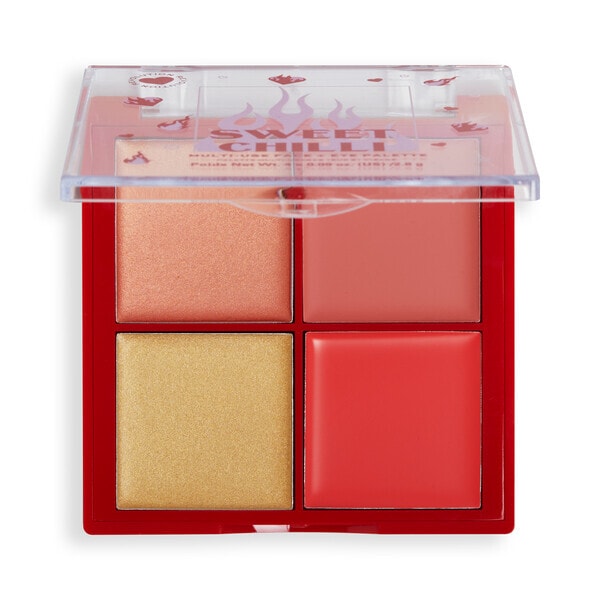 Product Information:Turn up the heat... Time to spice it up with the Sweet Chilli collection!,Features:Say Hello To Our Hottest Launch Yet... Bring Your Hottest Glam Game With Fierce And Fiery Colours From The Sweet Chilli Blush/ Highlight Quad! Featuring Two Highlighter And Two Blush Shades In A Cream Finish, This Lightweight Quad Will Apply Seamlessly – Illuminating Your Cheeks With The Ultimate Spice Of Colour Or Glow, Guaranteed To Send Heat Waves! How To Use: With Your Favourite Brush, Dust The Blush Onto Your Cheeks, And Apply Highlighter To The High Points Of Your Face Where You Want To Achieve A Glow. Cruelty-Free And Vegan,Warning or Restrictions:None,Product Specification:Shades 1, 3: HYDROGENATED POLYISOBUTENE, MICA, CAPRYLIC/CAPRIC TRIGLYCERIDE, ISONONYL ISONONANOATE, CALCIUM ALUMINUM BOROSILICATE, CERA MICROCRISTALLINA (MICROCRYSTALLINE WAX, CIRE MICROCRISTALLINE), BIS-DIGLYCERYL POLYACYLADIPATE-2, SYNTHETIC CERA/WAX, SILICA, CERA CARNAUBA (COPERNICIA CERIFERA (CARNAUBA) WAX, CIRE DE CARNAUBA), PHENOXYETHANOL, TOCOPHERYL ACETATE, CAPRYLYL GLYCOL, TIN OXIDE, TRIETHOXYCAPRYLYL SILANE. [+/- MAY CONTAIN (PEUT CONTENIR): CI 77891 (TITANIUM DIOXIDE), CI 77491 (IRON OXIDES), CI 15850 (RED 6 LAKE)]. Shades 2, 4: HYDROGENATED POLYISOBUTENE, ISONONYL ISONONANOATE, BIS-DIGLYCERYL POLYACYLADIPATE-2, DIMETHICONE, HYDROGENATED POLYISOBUTENE, TRIHYDROXYSTEARIN, CERA MICROCRISTALLINA (MICROCRYSTALLINE WAX, CIRE MICROCRISTALLINE), MICA, SILICA, SYNTHETIC CERA/WAX, OZOKERITE, CERA CARNAUBA (COPERNICIA CERIFERA (CARNAUBA) WAX, CIRE DE CARNAUBA), DIMETHICONE/VINYL DIMETHICONE CROSSPOLYMER, PHENOXYETHANOL, TRIETHOXYCAPRYLYLSILANE, TOCOPHERYL ACETATE, CAPRYLYL GLYCOL. [+/- MAY CONTAIN (PEUT CONTENIR): CI 77891 (TITANIUM DIOXIDE), CI 15985 (YELLOW 6 LAKE), CI 15850 (RED 6 LAKE), CI 77499 (IRON OXIDES)]
