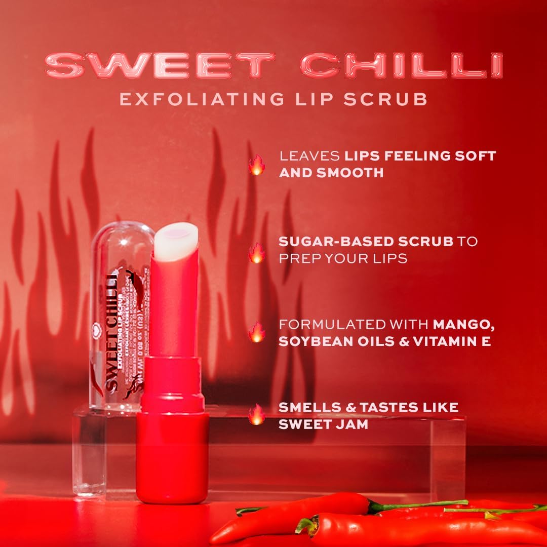 About The Product : EXFOLIATING LIP MASK: Exfoliate flaky and dry lips with this Sweet Chilli exfoliating mask, a sugar-based scrub to prep your lips for the fieriest pout!