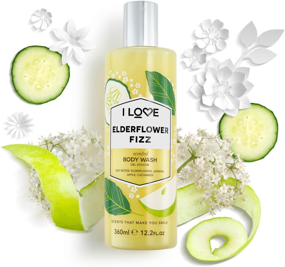 I Love Elderflower Fizz Scented Body Wash, Rich & Creamy Foam Which Contains Natural Fruit Extracts, Includes Pro Vitamin B5 For Moisturised & Silky Smooth Skin, Crueltyfree & Veganfriendly 350Ml