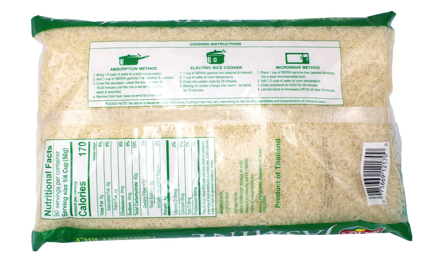 Introducing Iberia Jasmine Rice, The Premium Quality Rice Sourced From The Lush And Fertile Regions Of Thailand. This Aromatic Rice Is Renowned For Its Delicate Fragrance, Soft Texture, And Distinct Flavor. Expertly Milled To Preserve Its Natural Goodness And Ensure Consistent Cooking Results Every Time, Iberia Jasmine Rice Is The Perfect Choice To Create A Dish That Is Both Delicious And Nutritious. Naturally Gluten-Free And Free From Any Additives Or Preservatives, This Rice Is A Healthier Choice For You And Your Family. With Its Long Grains And Fluffy Texture, Iberia Jasmine Rice Adds A Touch Of Elegance And Sophistication To Any Meal, Making It The Ideal Accompaniment To Any Dish. So, Whether You'Re A Professional Chef Or A Home Cook, Try Iberia Jasmine Rice Today And Experience The Unparalleled Flavor And Aroma Of This Premium Quality Rice!