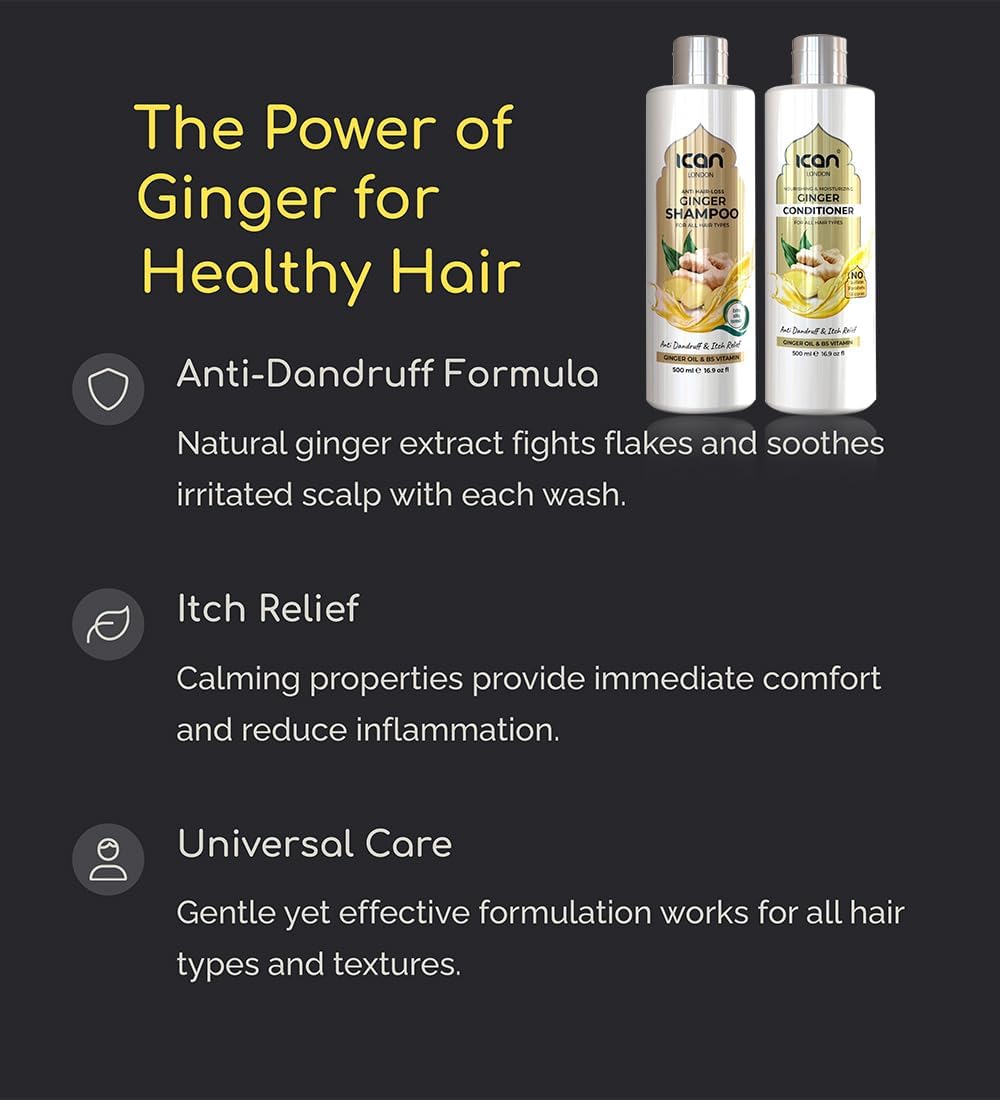 Ican London Ginger Hair Care Set, Anti Hair-Loss Shampoo And Conditioner, 500 Ml, 2-Piece