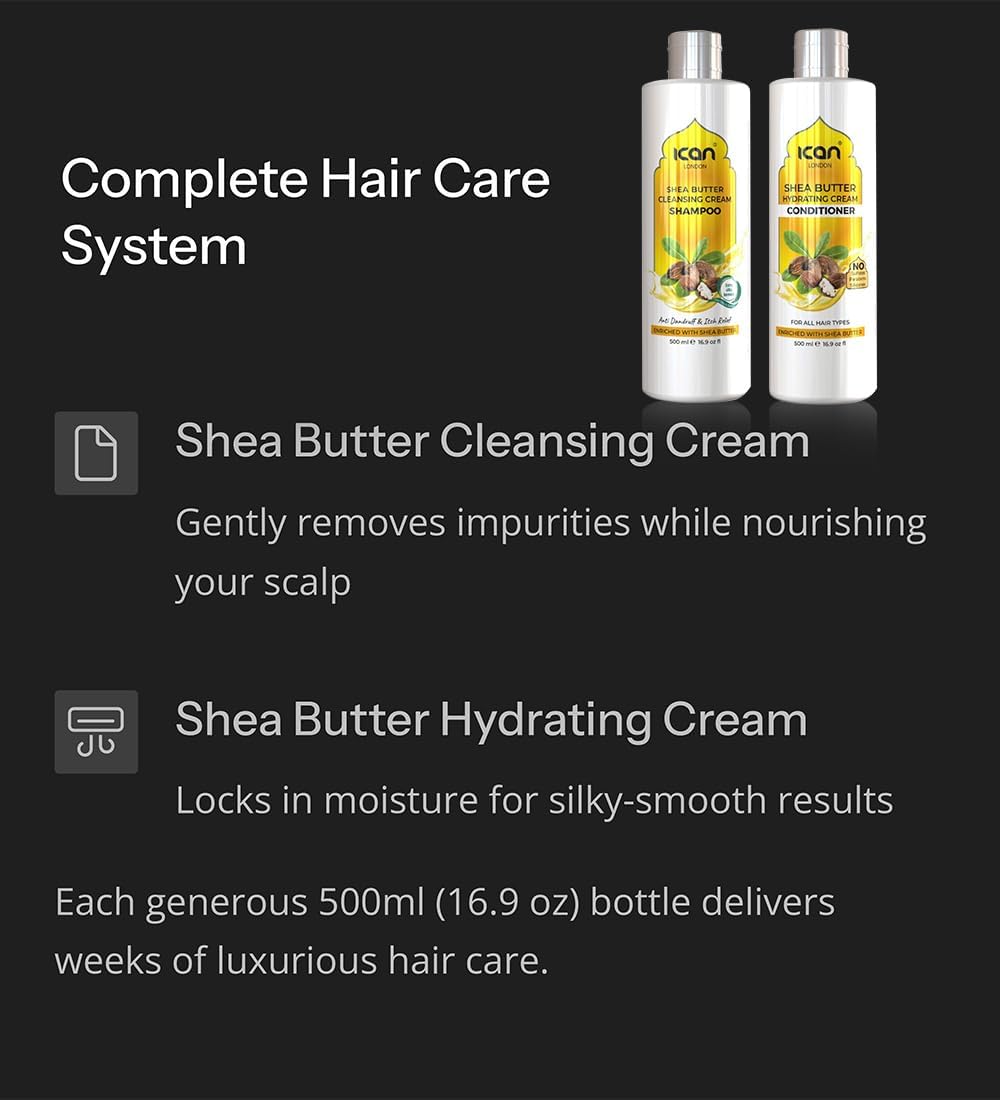 Ican London Shea Butter Sulfate Free Cleansing Cream Shampoo + Sulfate Free Hydrating Cream Conditioner Duo Pack 500Ml Each