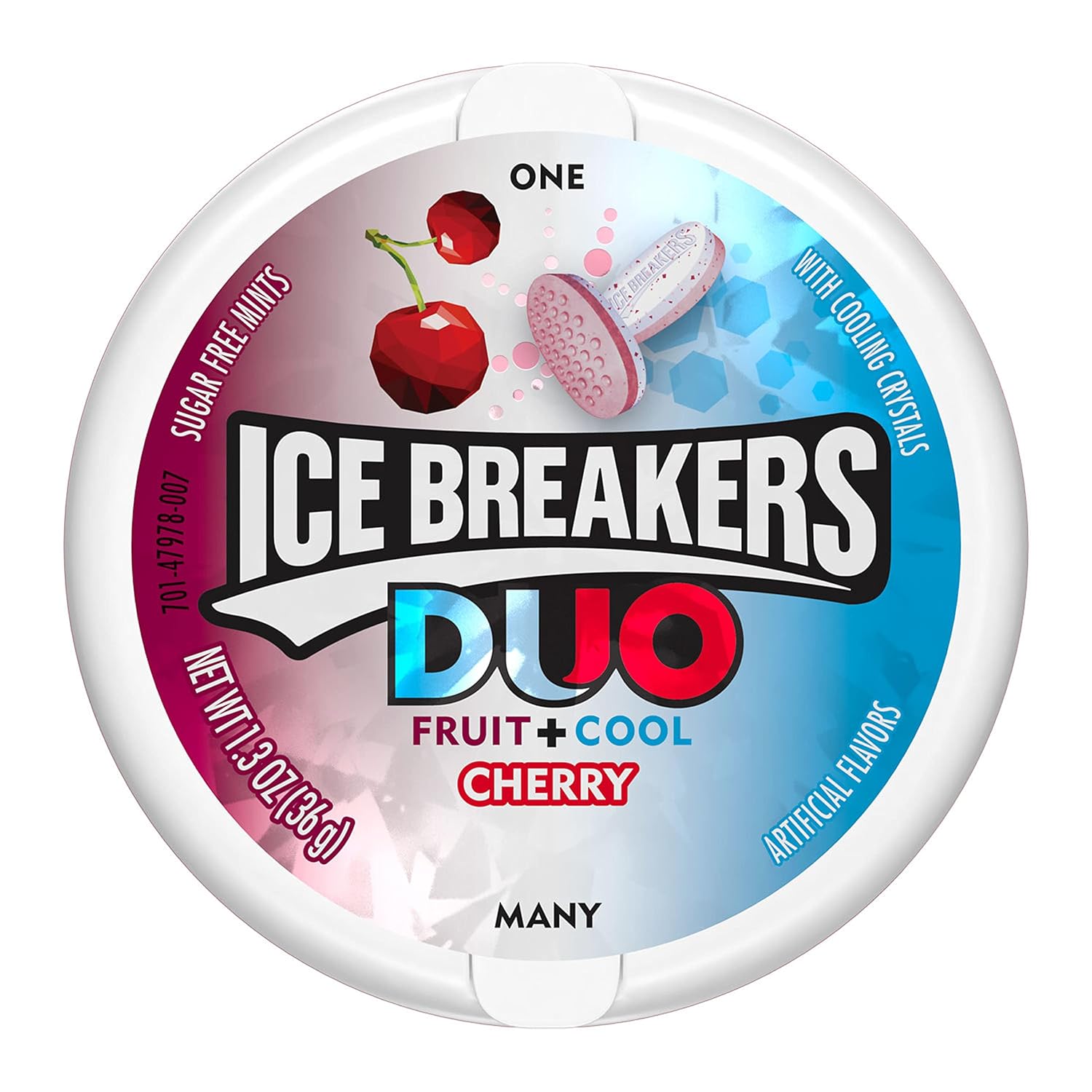 Sugar Free Ice Breakers Duo Breath Mints With Cooling Crystals And A Deliciously Cool Cherry Flavor