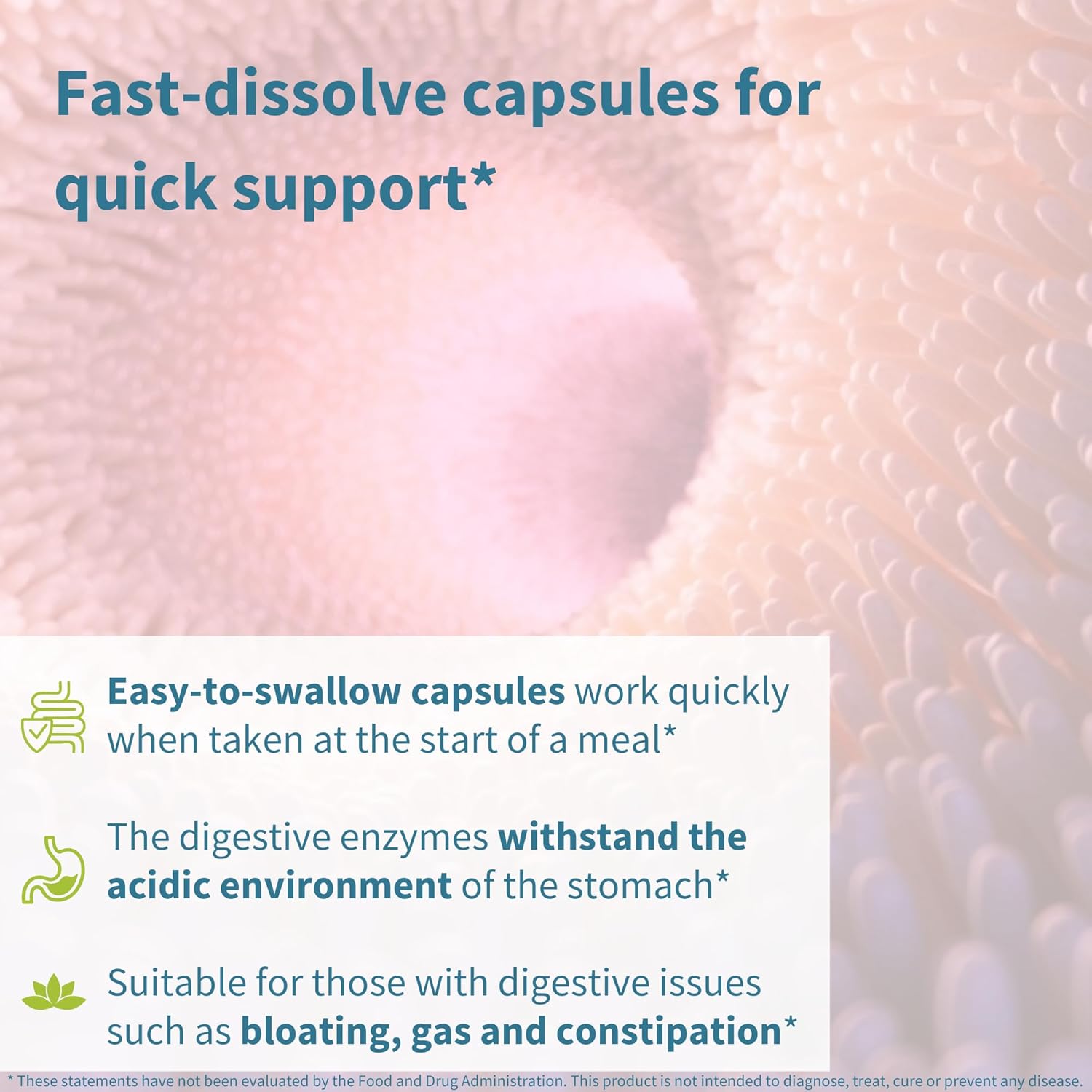 FAST DISSOLVE CAPSULES break down quickly so the enzymes can get to work immediately. Simply take one capsule at the start of a meal