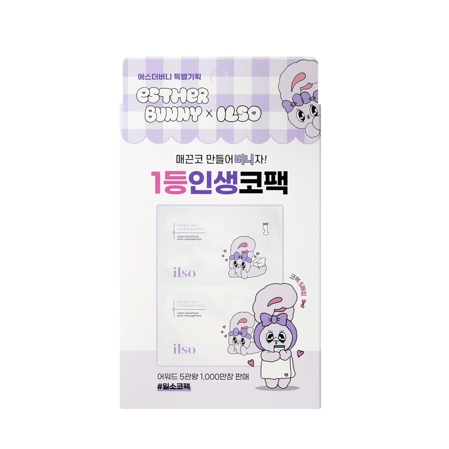 Ilso Natural Mild Clear Nose Patch, Melt Blackheads & Tighten Pores, No Irritation, Korean Skincare, Cotton Swabs Included, 5 Sheets (Esther Bunny Limited Edition) (Pink Esther Bunny Limited Edition)