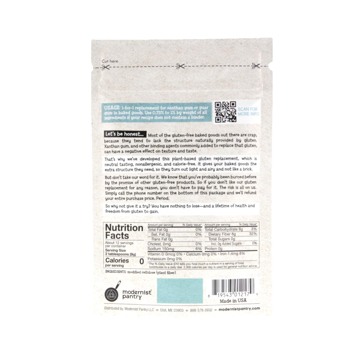Usage: 1-to-1 replacement for xanthan gum or guar gum in baked goods. Use 0.75% to 1% by weight of all ingredients if your recipe does not contain a binder