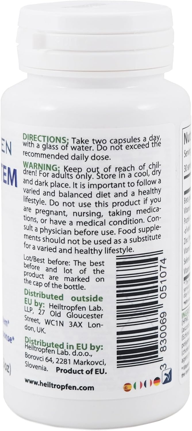 About this item Immune System Boost, 60 Veggie Capsules, Food Supplement, supports the immune systen and helps maintain immune response Serving size: 2 capsule per day, 30 servings per container. Directions: Take two capsules a day at breakfast, with a glass of water. Do not exceed the recommended daily dose. Ingredients: beta-D(1.3/1.6)-glucan, capsule (HPMC - hydroxypropyl methyl cellulose), vitamin C (ascorbic acid), zinc gluconate, purple coneflower (echinacea purpurea) extract standardized to at least 4% polyphenols, L-selenomethionine, vitamin D (cholecalciferol), vitamin B12 (riboflavin), anticaking agent (magnesium stearate). See more product details,Immune System Boost, 60 Veggie Capsules, Food Supplement, supports the immune systen and helps maintain immune response,Serving size: 2 capsule per day, 30 servings per container,Directions: Take two capsules a day at breakfast, with a glass of water. Do not exceed the recommended daily dose,Ingredients: beta-D(1.3/1.6)-glucan, capsule (HPMC - hydroxypropyl methyl cellulose), vitamin C (ascorbic acid), zinc gluconate, purple coneflower (echinacea purpurea) extract standardized to at least 4% polyphenols, L-selenomethionine, vitamin D (cholecalciferol), vitamin B12 (riboflavin), anticaking agent (magnesium stearate)