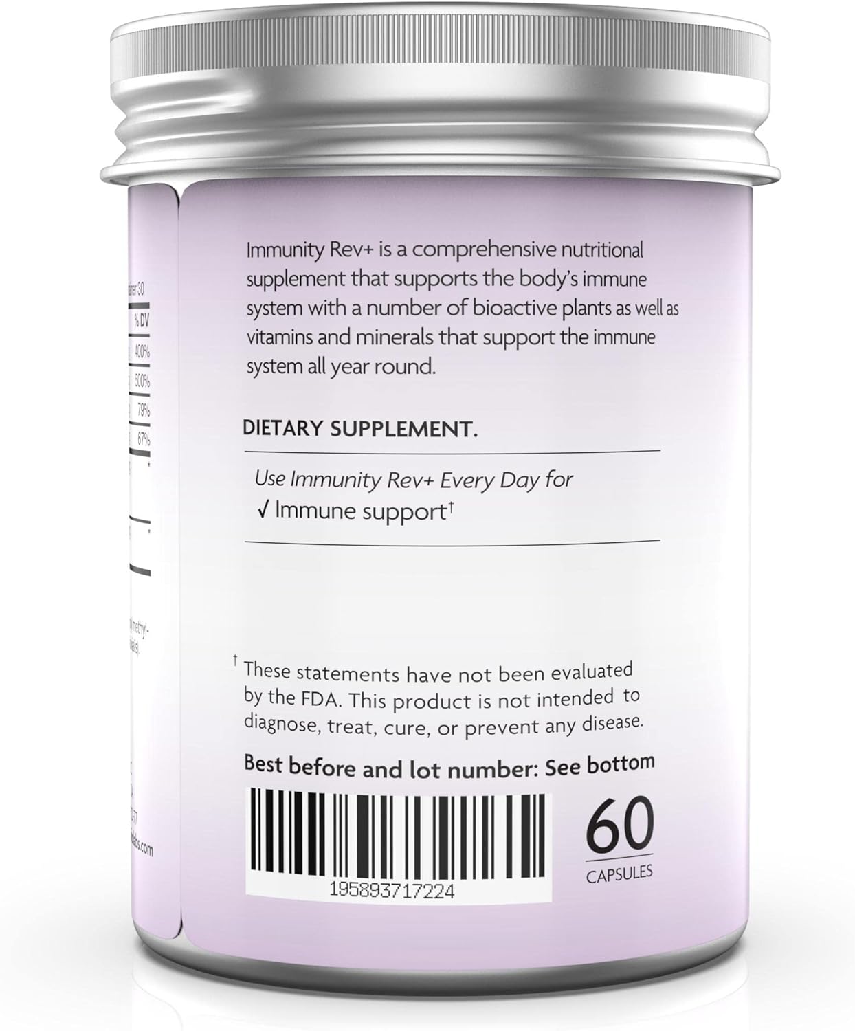 Immunity Rev+ | Ultra Potency Beta- Glucans 1,3/1,6 | 250 Mg With Algae Extract, Vitamin C, D3, Selenium And Zinc, Non-Gmo, Gluten Free | 60 Capsules