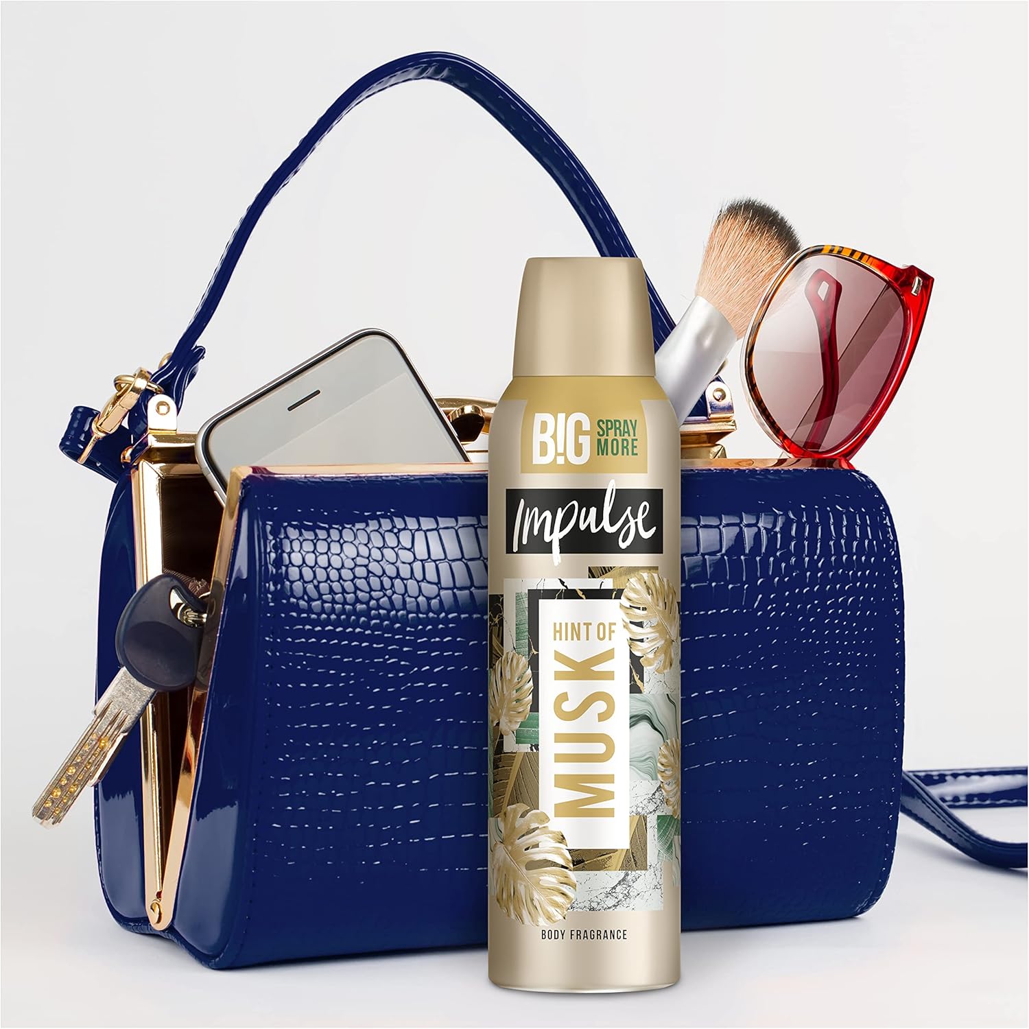 About this item Impulse Hint Of Musk Body Spray Deodorant 150 ml from the number 1 female body spray brand in the UK Dermatologically tested deodorant for women Impulse Body Mist is gentle on your skin Twist, Press and Spray the deodorant anywhere, anytime and Trust Your Impulse Scented with a floral bouquet that blooms with a jasmine, rose and geranium fragrance Spray more with this convenient 150 ml body spray › See more product details,Impulse Hint Of Musk Body Spray Deodorant 150 ml from the number 1 female body spray brand in the UK,Dermatologically tested deodorant for women,Impulse Body Mist is gentle on your skin,Twist, Press and Spray the deodorant anywhere, anytime and Trust Your Impulse,Scented with a floral bouquet that blooms with a jasmine, rose and geranium fragrance,Spray more with this convenient 150 ml body spray