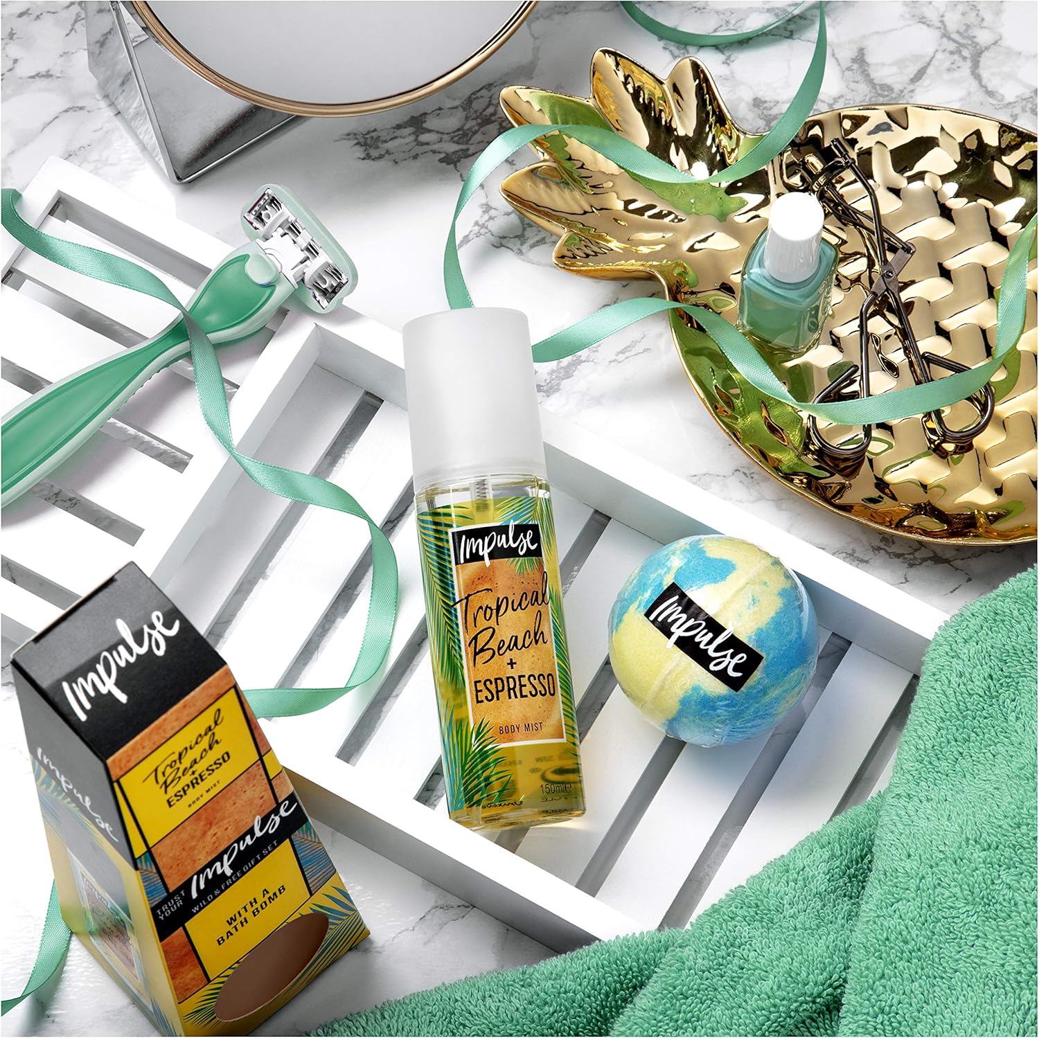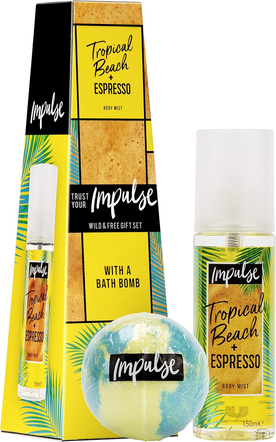 About The Product : Impulse Wild and Free Body Mist and Bath Bomb Gift Set is an ideal gift for her, containing the Tropical Beach + Espresso Body Mist and a unique Impulse bath bomb