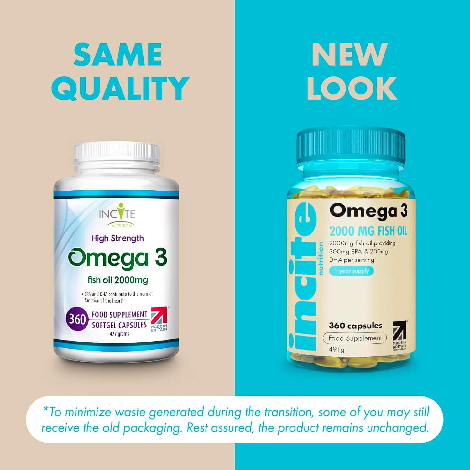 Incite Nutrition Omega 3 Fish Oil Capsules 2000 Mg. 360 Softgels. 6 Month Supply Of High Strength Omega 3 Fatty Acids With Epa & Dha. Non-Gmo, Uk Made, No Fishy Aftertaste