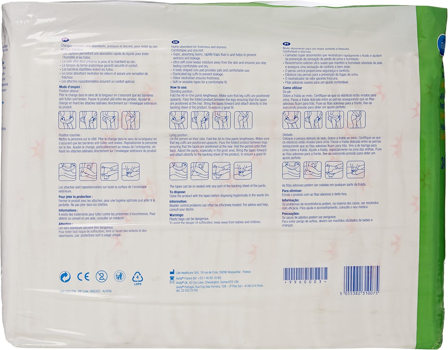 About this item The breathable all-in-one large extra day pants is an effective solution for managing moderate to heavy urinary incontinence Particularly recommended for people with limited mobility or confined to bed They are like a nappy so can be slid under the patient who is bed bound and then fastened at the side Optimal absorption and discretion for the best comfort Available in a large size › See more product details,The breathable all-in-one large extra day pants is an effective solution for managing moderate to heavy urinary incontinence,Particularly recommended for people with limited mobility or confined to bed,They are like a nappy so can be slid under the patient who is bed bound and then fastened at the side,Optimal absorption and discretion for the best comfort,Available in a large size