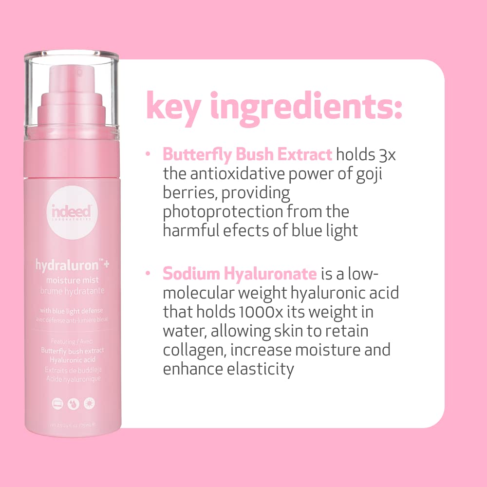 Indeed Labs Hydraluron Moisture Mist With Blue Light Defense Refreshing Facial Spray With Hyaluronic Acid And Butterfly Bush Extract, 5Ml