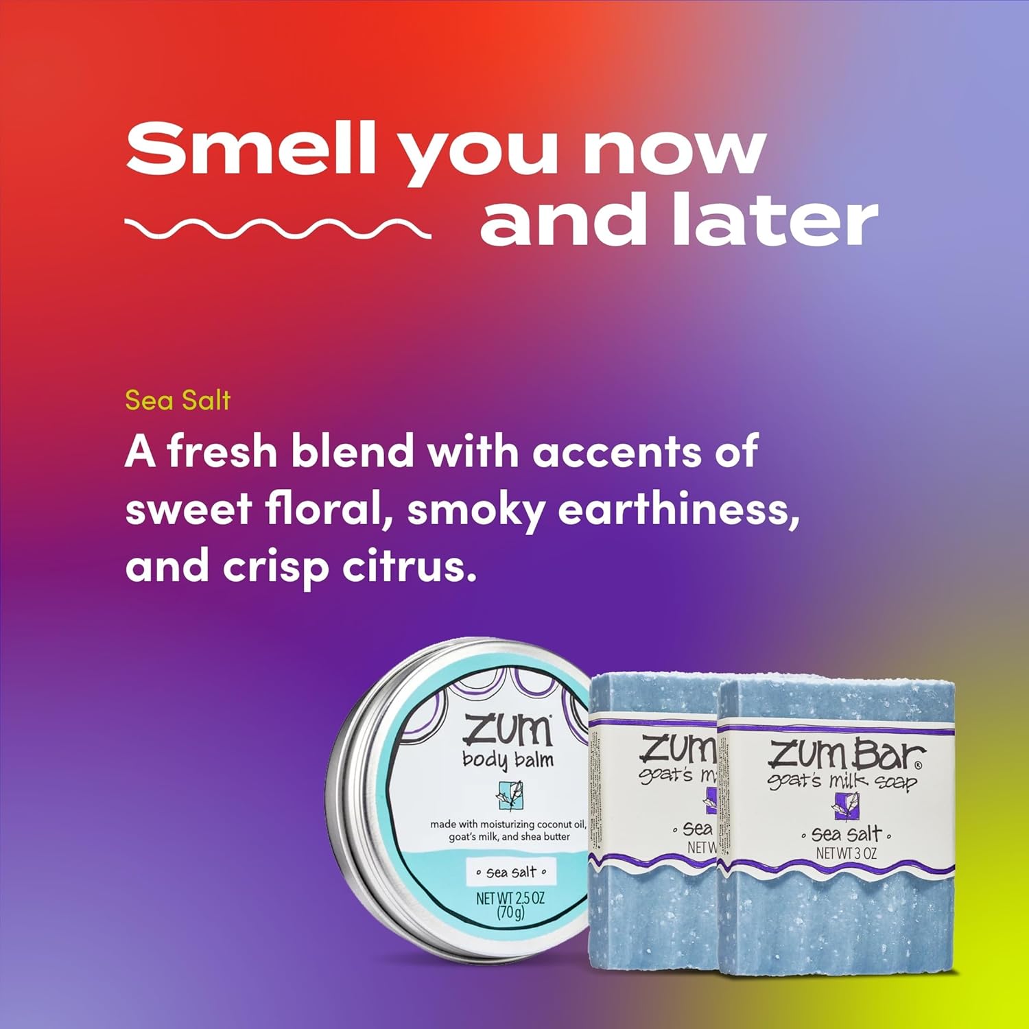 About this item Goat Milk Soap Bar: From the way this bar of soap lathers to the delicate scent it leaves on your skin, this funky, wavy body soap bar is hydrating magic for your skin Premium Body Moisturizer: Our deeply moisturizing goat's milk and shea butter skin moisturizer leaves your skin more nourished and aromatic than ever before Crisp Scent Notes: Sea Salt has a fresh blend with initial scents of floral and a hint of grapefruit, touches of geranium and smoky patchouli with a citrus finish Natural & Cruelty-Free: We use ingredients from nature and don't test our products on animals, making our products vegetarian and cruelty-free About Zum by Indigo Wild: Zum's natural products for body and home are handcrafted in the U.S.A. with ingredients you can say, spell and love to smell See more product details,Goat Milk Soap Bar: From the way this bar of soap lathers to the delicate scent it leaves on your skin, this funky, wavy body soap bar is hydrating magic for your skin,Premium Body Moisturizer: Our deeply moisturizing goat's milk and shea butter skin moisturizer leaves your skin more nourished and aromatic than ever before,Crisp Scent Notes: Sea Salt has a fresh blend with initial scents of floral and a hint of grapefruit, touches of geranium and smoky patchouli with a citrus finish,Natural & Cruelty-Free: We use ingredients from nature and don't test our products on animals, making our products vegetarian and cruelty-free,About Zum by Indigo Wild: Zum's natural products for body and home are handcrafted in the U.S.A. with ingredients you can say, spell and love to smell