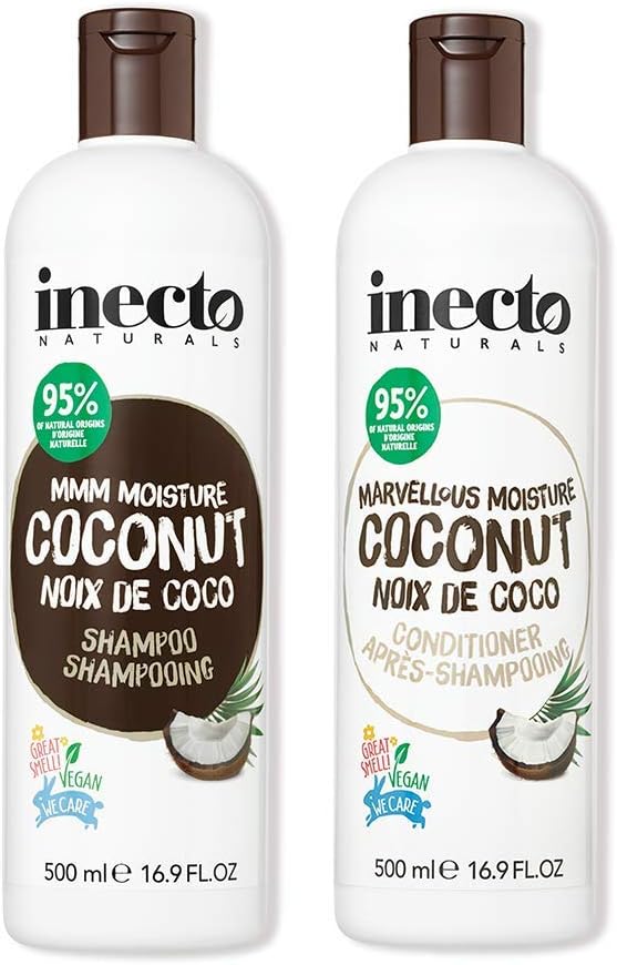 Product Description With thirst quenching pure Organic Coconut Oil this lustre replenishing formula will deeply nourish and leave hair feeling heavenly. Seduce your tresses with this super-creamy conditioner for a splendidly silky reward. Infused with Pure Organic Coconut Oil, your hair will be relieved of dryness and smell beyond amazing. Directions Use the shampoo on wet hair, distribute evenly throughout the hair and scalp, massage it in and rinse thoroughly. Apply the conditioner after shampooing, leave for a few minutes and then rinse thoroughly,SIMPLY PURE. 90 percent of our formulation comes from natural origins, and our hero ingredients are organically, sustainability sourced to make you feel fabulous, both inside and out,GO COCO-NUTS OVER THIS NATURAL SHAMPOO AND CONDITIONER SET. Infused with a healthy dose of coconut oil, they will add volume to fine hair and thin strands, while smelling amazingly good,SAY GOODBYE TO DRY HAIR. Inecto’s pure organic coconut oil deeply nourishes and leaves hair feeling soft and heavenly. Perfect daily shampoo and conditioner combo to remove buildups,HYPOALLERGENIC. Our gentle ingredients are * of sulfates, parabens, and alergens. Inecto products are vegan and safe, and packaged in recyclable bottles to help pave the way for a greener future,HIGHLY EFFECTIVE. No matter your hair type, this shampoo and conditioner are proven to always work their magic. Will * and protect your hair to always keep you looking beautiful
