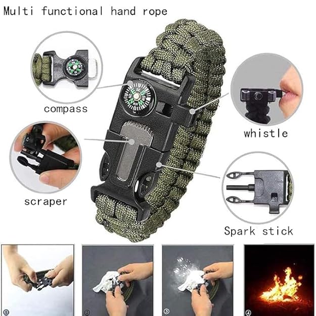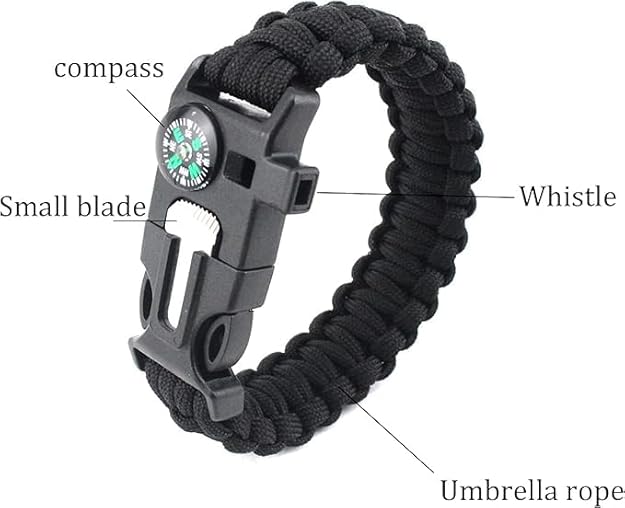INFINIBYTE 5-in-1 Paracord Survival Bracelet β Outdoor Emergency Wristband with Compass, Fire Starter, Whistle, Flint & Cutter for Hiking, Camping, Hunting(Pack of2)
