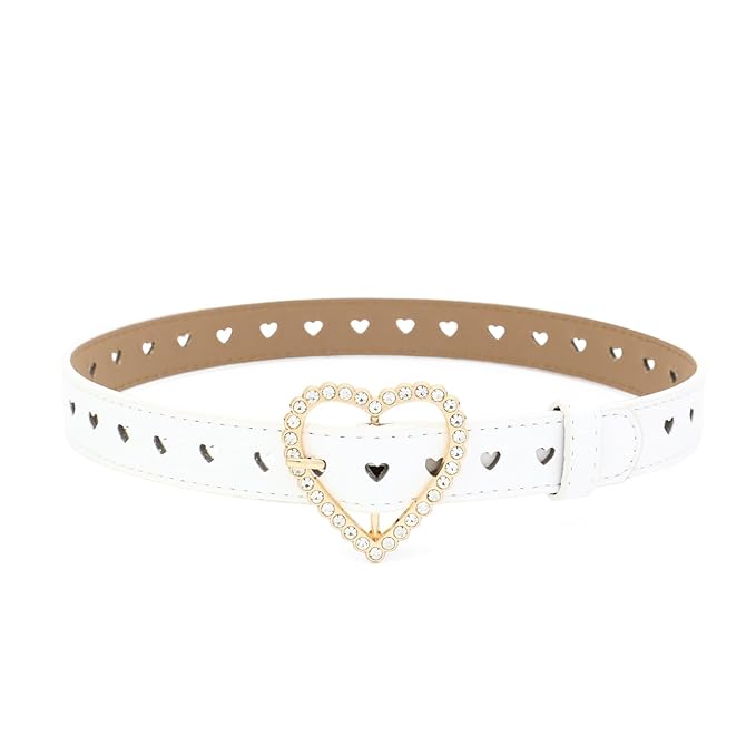 INFINIBYTE Girls’ Leather Belt with Rhinestone Heart Buckle – Kids’ Adjustable Waist Belt for Jeans, Dresses, School or Gift (Punk Style)
