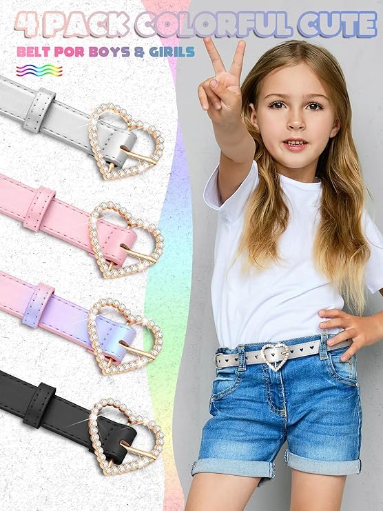 The INFINIBYTE Girls’ Leather Belt with Rhinestone Heart Buckle is a stylish and functional accessory designed to add sparkle and personality to any outfit. Made from high-quality faux leather, this adjustable belt features a dazzling heart-shaped buckle encrusted with rhinestones, offering a playful yet chic punk-inspired touch. Perfect for pairing with jeans, dresses, school uniforms, or special occasions, it provides a secure fit and fashionable flair. Whether for everyday wear or as a thoughtful gift, this belt is a fun and trendy choice for young girls who love to stand out with their style