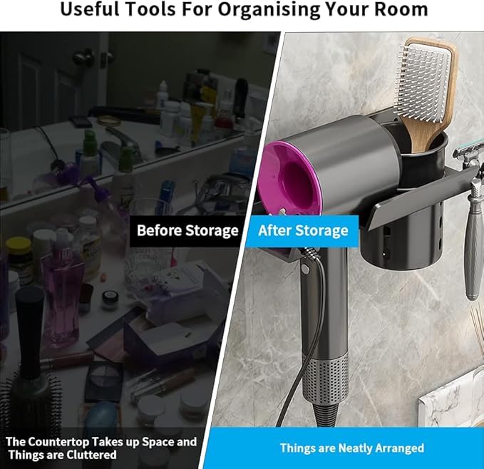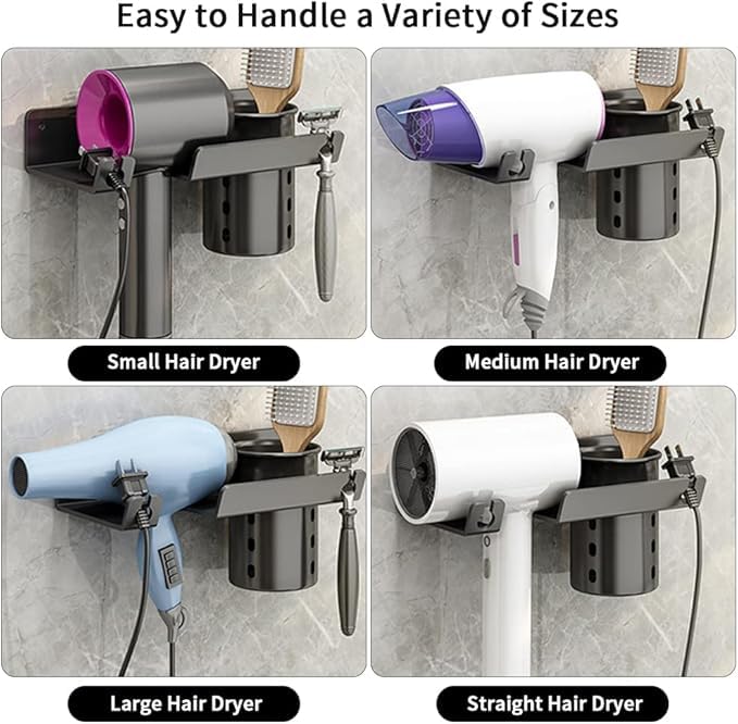 Keep your styling tools neatly organized and easily accessible with the INFINIBYTE Hair Dryer Holder Wall Mount, a sleek and practical solution for your bathroom, salon, or dressing table. Designed to hold a hair dryer, straightener, and other essentials, this multi-function organizer maximizes space while maintaining a clean, clutter-free environment. Made from durable, high-quality materials, it securely mounts to the wall and features compartments to safely store hot tools without damaging surfaces. Ideal for both home and professional use, this space-saving stand combines convenience with modern style, making your daily hair routine more efficient and organized.