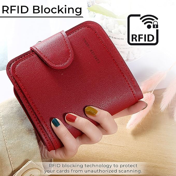 INFINIBYTE Small Women's Wallet PU Leather - Multi Fold Wallets Credit Card Holder Coin Purse Zipper Small Clutch Secure Card Case/Gift Wallet (RED)