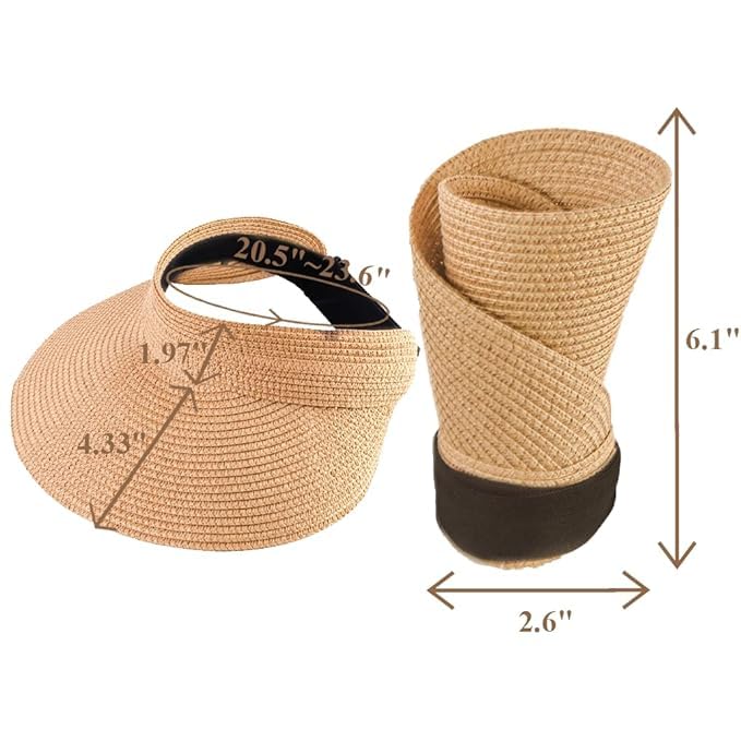 INFINIBYTE Women's Wide Brim Straw Sun โ Foldable UV Protection Beach Visor Hat, Packable Summer Travel Hat with UPF 50+(Packof2) Khaki