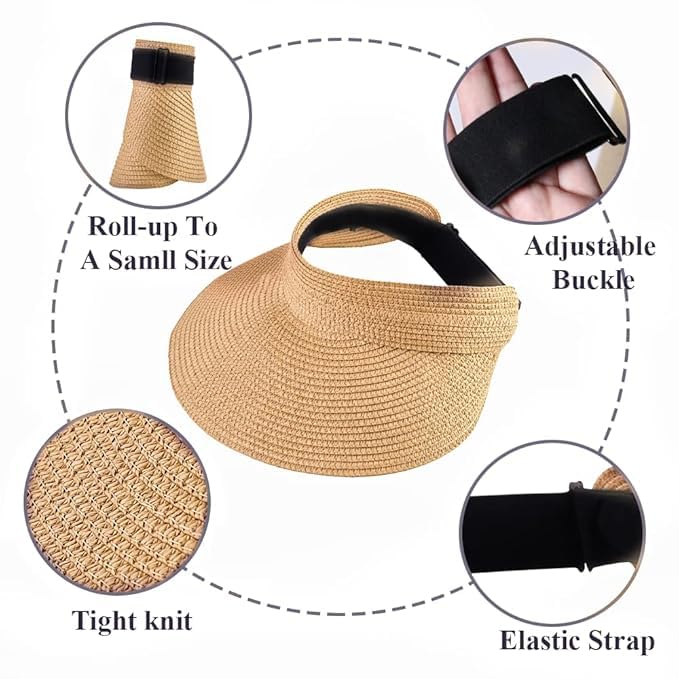The INFINIBYTE Women's Wide Brim Straw Sun Hat is the perfect blend of style and sun protection for your summer adventures. Crafted from breathable, lightweight straw, this foldable beach visor hat offers a generous wide brim that shields your face and neck from harmful UV rays with UPF 50+ protection. Its packable design makes it travel-friendlyโeasily folding into your beach bag or suitcase without losing shape. Ideal for beach days, garden outings, picnics, or vacations, this 2-pack set in classic khaki ensures you stay cool, comfortable, and chic under the sun. A must-have accessory for stylish, sun-safe summer wear.
