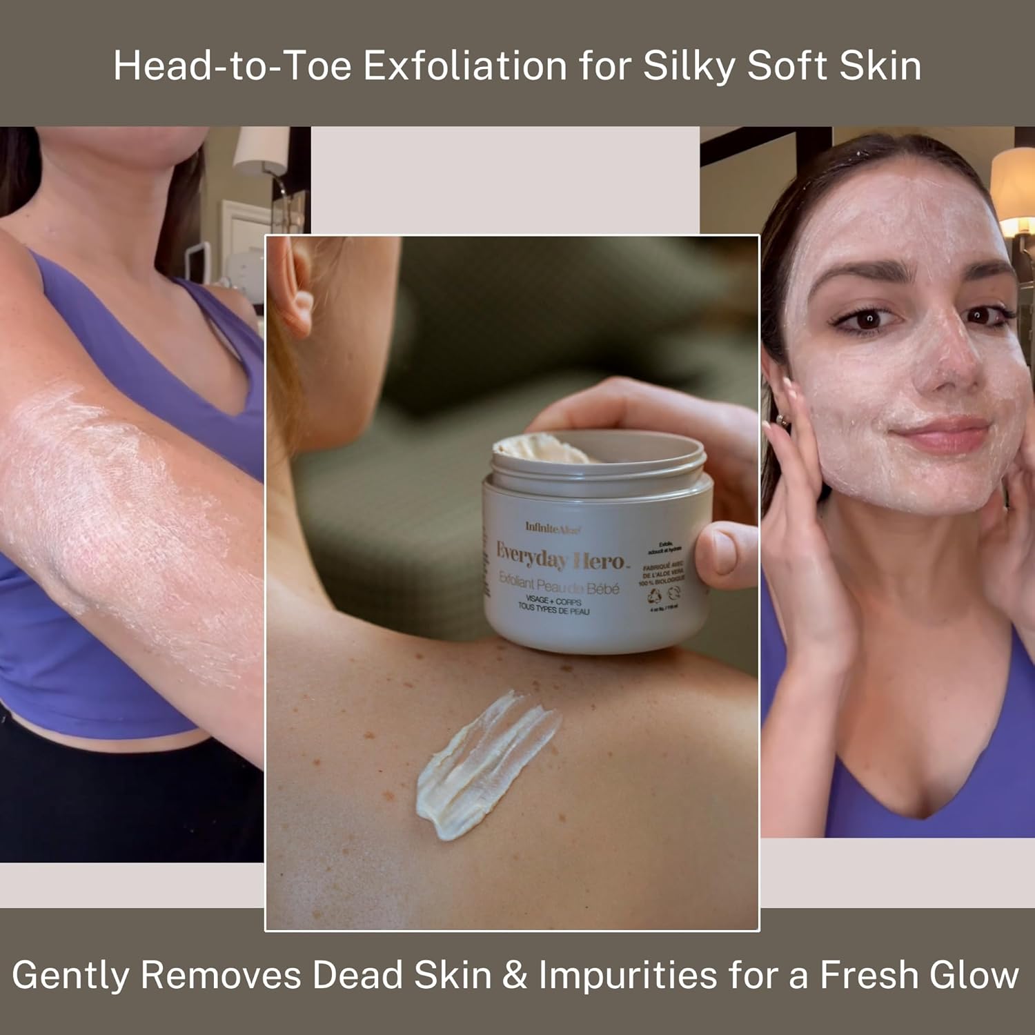 About this item HEAD-TO-TOE EXFOLIATION FOR SILKY SMOOTH SKIN. InfiniteAloe Baby Soft Scrub gently exfoliates and smooths the skin, removing dead skin cells and impurities to reveal a soft, rejuvenated complexion. Perfect for the face & body, this scrub polishes the skin without irritation. ALOE VERA + VITAMIN E FOR HYDRATION & PROTECTION. Infused with organic aloe vera, this formula moisturizes while exfoliating, preventing dryness or irritation. Vitamin E (tocopherol) provides powerful antioxidant protection, helping to combat free radical damage and keep skin looking youthful. CLEANSES WITHOUT STRIPPING NATURAL OILS. Unlike harsh scrubs, Baby Soft Scrub contains a gentle cleansing agent that removes dirt and impurities while preserving the skin’s natural moisture barrier. Skin feels fresh, balanced, and deeply nourished after each use. ROSEHIP OIL FOR DEEP NOURISHMENT & GLOW. Packed with rosehip oil, this scrub hydrates, smooths, and enhances your natural glow. Rich in essential fatty acids, it promotes a radiant, healthy complexion while supporting skin elasticity. PERFECT FOR ALL SKIN TYPES & DAILY USE. Formulated for sensitive, dry, oily, and combination skin, this gentle yet effective exfoliator can be used daily to keep skin soft, smooth, and baby fresh. Perfect for body, hands, feet, and face—your new go-to for glowing skin! See more product details, HEAD-TO-TOE EXFOLIATION FOR SILKY SMOOTH SKIN. InfiniteAloe Baby Soft Scrub gently exfoliates and smooths the skin, removing dead skin cells and impurities to reveal a soft, rejuvenated complexion. Perfect for the face & body, this scrub polishes the skin without irritation, ALOE VERA + VITAMIN E FOR HYDRATION & PROTECTION. Infused with organic aloe vera, this formula moisturizes while exfoliating, preventing dryness or irritation. Vitamin E (tocopherol) provides powerful antioxidant protection, helping to combat free radical damage and keep skin looking youthful, CLEANSES WITHOUT STRIPPING NATURAL OILS. Unlike harsh scrubs, Baby Soft Scrub contains a gentle cleansing agent that removes dirt and impurities while preserving the skin’s natural moisture barrier. Skin feels fresh, balanced, and deeply nourished after each use, ROSEHIP OIL FOR DEEP NOURISHMENT & GLOW. Packed with rosehip oil, this scrub hydrates, smooths, and enhances your natural glow. Rich in essential fatty acids, it promotes a radiant, healthy complexion while supporting skin elasticity, PERFECT FOR ALL SKIN TYPES & DAILY USE. Formulated for sensitive, dry, oily, and combination skin, this gentle yet effective exfoliator can be used daily to keep skin soft, smooth, and baby fresh. Perfect for body, hands, feet, and face—your new go-to for glowing skin!