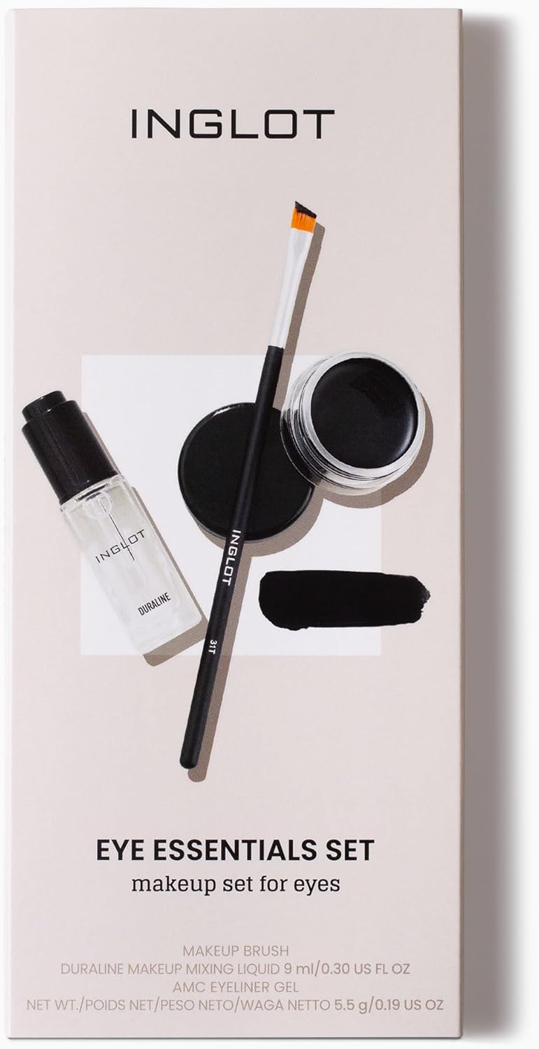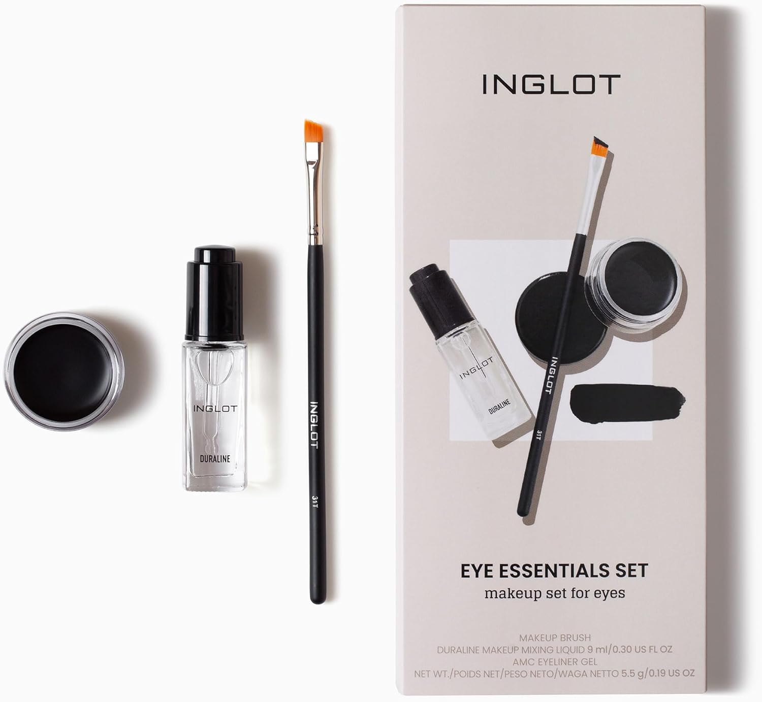 Inglot Eye Essentials Set | Duraline + Amc Eyeliner Gel 77 + Makeup Brush 31T | Black Eyeliner | Prolong Makeup Durability | Transparent | Waterproof |