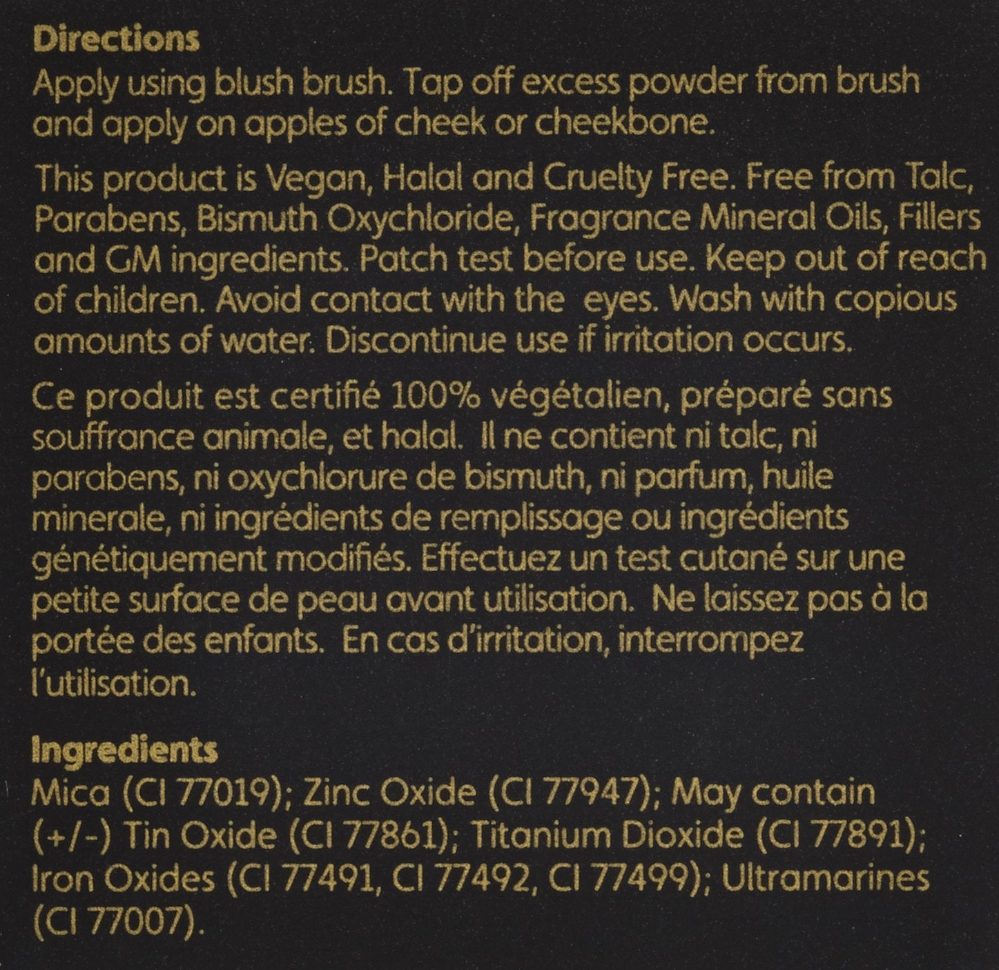 ABOUT THE PRODUCT: 1 > Great Savings On Quality Branded Items 2 > Inika Cosmetics 3 > Inika Cosmetics Blooming Nude Blush | 3gInika Cosmetics - Blooming Nude Blush (3g)Blooming Nude - A rich translucent bronze for medium to dark complexions. INIKA Mineral Blush (3g) gives you warm, luscious colours delivered straight from nature! The texture is extraordinarily soft while the lack of fillers means that the pigment is super concentrated, so a little goes a long way! Free of oil, alcohol, talc, fillers, fragrance, preservatives and chemical dyes for all day colour and a long lasting youthful glow. Two shades are available as loose mineral powder (Use INIKA Blush Brush) and two shades are available in a convenient puff pot for on the go application. Blooming Nude - available as loose mineral powder in medium size (3g) only. Benefits Warm luscious colour delivered straight from natureHighly pigmented minerals giving a long lasting youthful glow Application Using the INIKA Blush Brush, tap off excess powder until there is just a faint dusting on the tip of the bristles. Apply to the apples of the cheeks and cheekbones. Ingredients Mica (CI 77019); Zinc Oxide (CI 77947); May contain (+/-) Tin Oxide (CI 778161); Titanium Dioxide (CI 77891); Iron Oxides (CI 77491, CI 77492, CI 77499); Ultramarines (CI 77007)