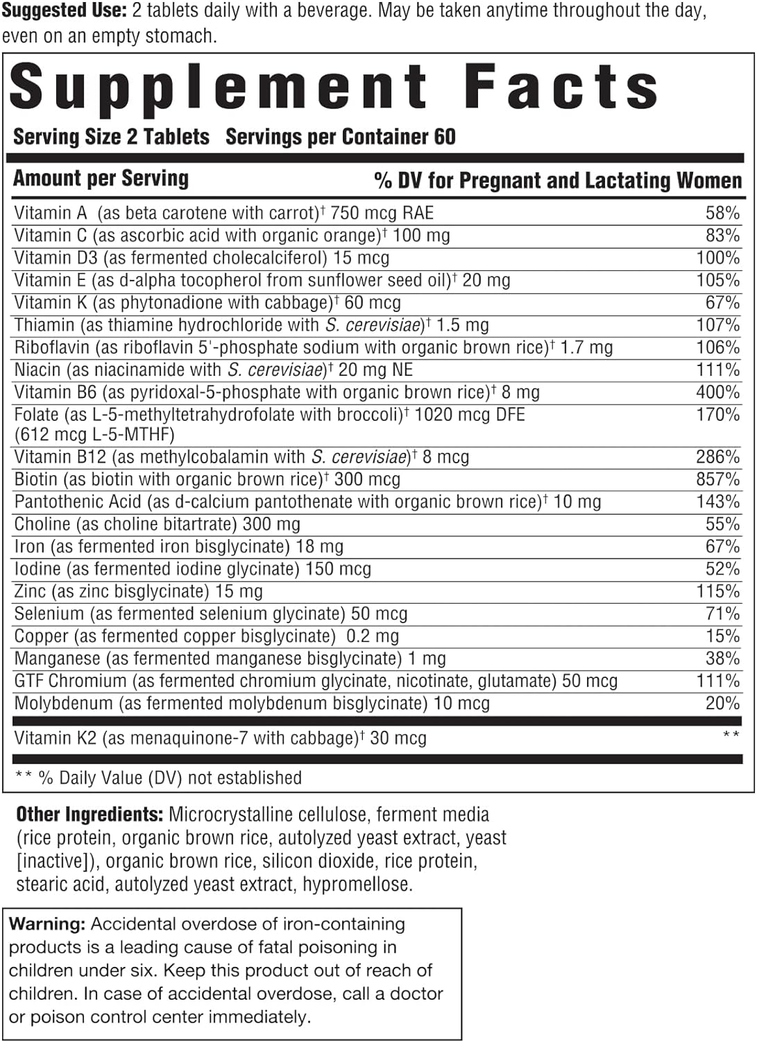 DESCRIPTION : INNATE Response Formulas, Baby & Me Multivitamin, Prenatal and Postnatal Vitamin, Vegetarian, Non-GMO, 120 Tablets (60 Servings)120 Count (Pack of 1)