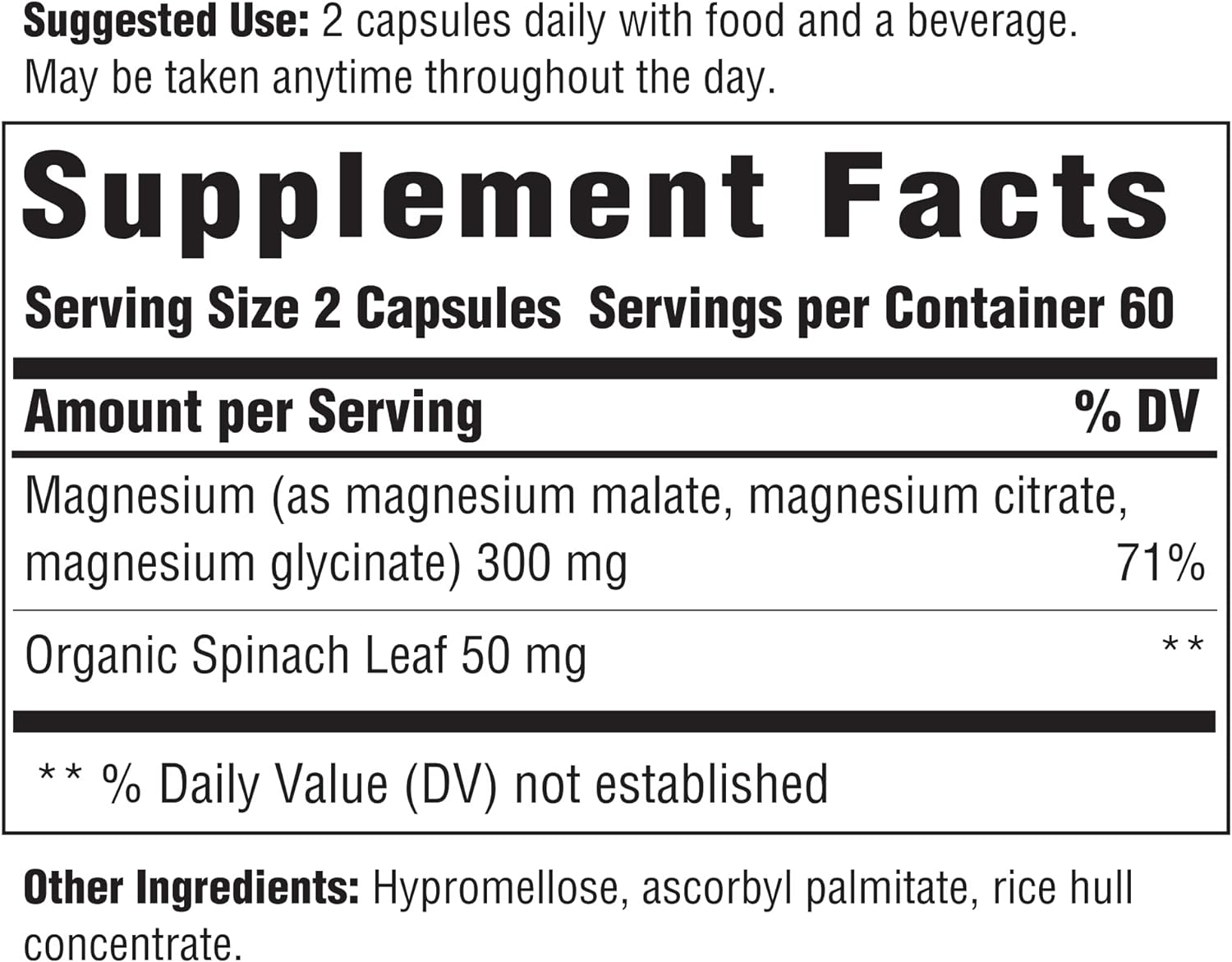 Three Magnesiums-In-One: Provides A Combination Of Three Highly Absorbable Forms Of Magnesium: Glycinate, Citrate, And Malate; Provides 300 Mg Of Magnesium Per Serving