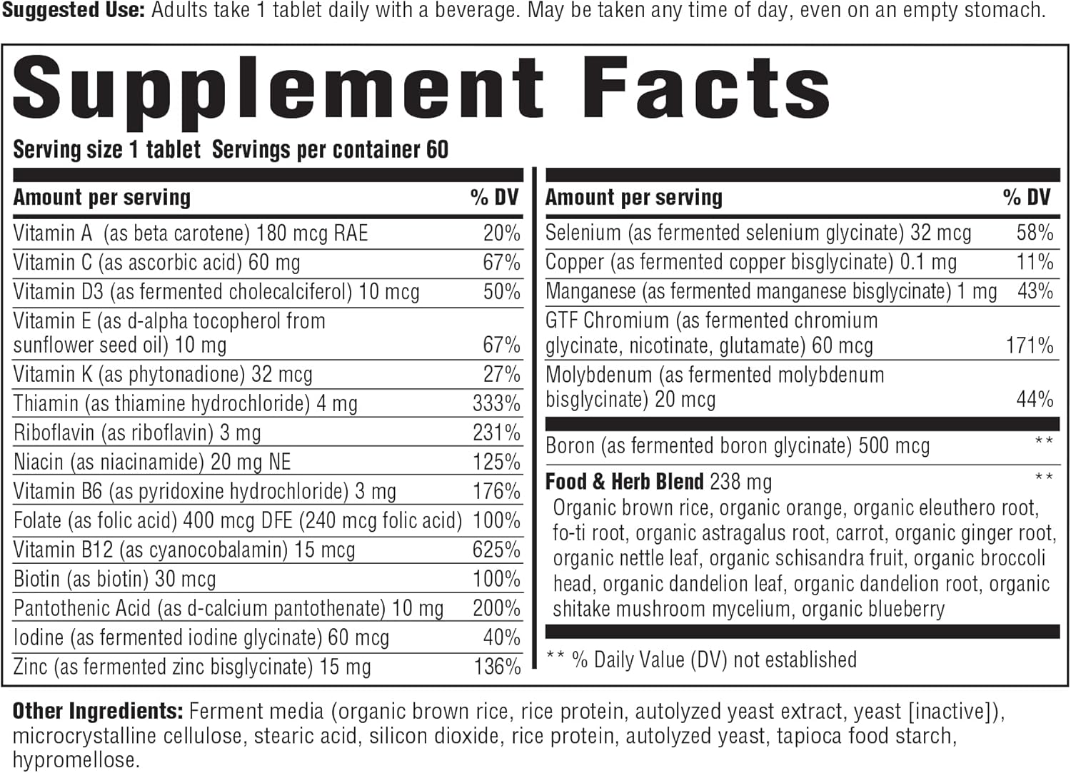 About this item Once Daily Multi For Men: Choose a convenient and holistic approach to supporting your optimal health and well-being with a multivitamin designed for men’s health Tailored Nutritional Support: B vitamins support cellular energy and a healthy nervous system; zinc aids healthy prostate function; 400 IU (10 mcg) vitamin D3 promotes bone health One Tablet: Taken daily, anytime of the day, even on an empty stomach; Suitable for vegetarians Put To The Test: Non-GMO; Certified B Corp; Certified Kosher; Tested for over 125 chemical substances; Free of gluten, dairy and soy Where Nature And Science Meet: Wellness is our natural state; that’s why we take a holistic approach to health by crafting supplements to support your body’s needs See more product details,Once Daily Multi For Men: Choose a convenient and holistic approach to supporting your optimal health and well-being with a multivitamin designed for men’s health,Tailored Nutritional Support: B vitamins support cellular energy and a healthy nervous system; zinc aids healthy prostate function; 400 IU (10 mcg) vitamin D3 promotes bone health,One Tablet: Taken daily, anytime of the day, even on an empty stomach; Suitable for vegetarians,Put To The Test: Non-GMO; Certified B Corp; Certified Kosher; Tested for over 125 chemical substances; Free of gluten, dairy and soy,Where Nature And Science Meet: Wellness is our natural state; that’s why we take a holistic approach to health by crafting supplements to support your body’s needs