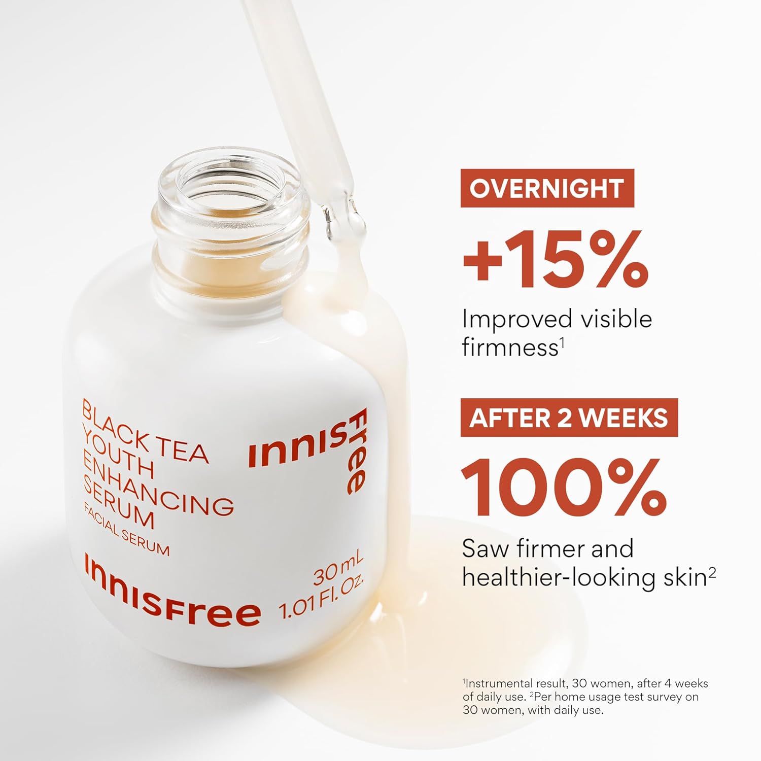 Innisfree Black Tea Youth Serum, Korean Anti-Aging Treatment With Niacinamide For Radiance, Firm Skin, Hydration, And Visible Skin Renewal