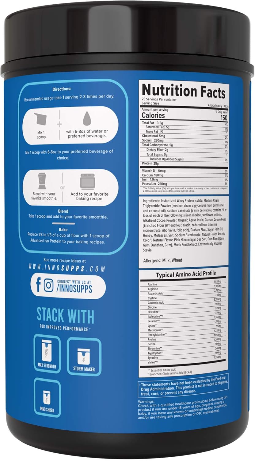 Innosupps Advanced Iso Protein | 100% Whey Isolate Protein Powder | No Artificial Sweeteners| Low Fat, Low Carbs | 25G Of Protein | Hormone Free, Gluten Free, Soy Free | (Vanilla Ice Cream)