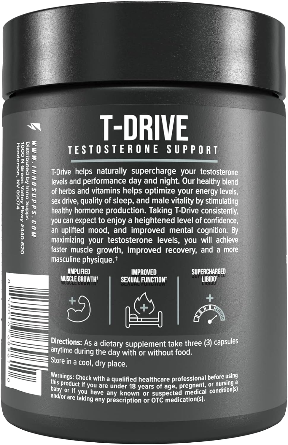 Innosupps : T-Drive | Testosterone Booster | Amplify Muscle Growth | Ksm-66 Ashwagandha, Boron, Fenugreek | 90 Capsules