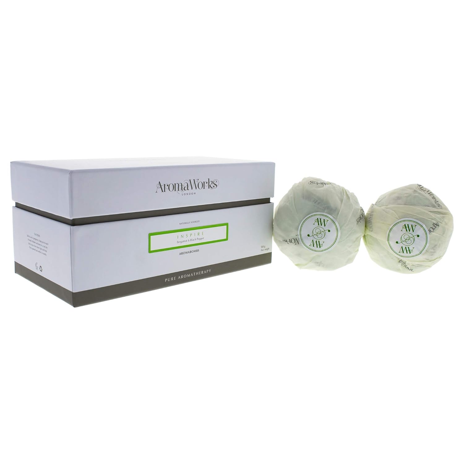 This duo featuring Inspireās blend of essential oils will help to combat mental fatigue, soothe your mind and calm your nerves. This warm, comforting aroma combines top notes of spicy Black Pepper with the freshness of uplifting Lime and the refreshing fruity-sweet notes of Bergamot, bringing you a beautifully balanced blend that will leave you feeling uplifted, creative, motivated and emotionally restored,AN UNFORGETTABLE EXPERIENCE; Let pure essential oils envelop you in the most luxurious and aromatic bathing experience; Our 100% natural AromaBombs are the most blissful way to restore comfort and balance to skin, body and mind,SOOTHING FOR EXPECTING MOTHERS; Avoid unnecessary risk to the newest member of your family with our bath bomb duo; This product is completely free of parabens which can cause harm to not just your body, but your child's as well,FEEL SOOTHED AND COMFORTED; This warm, comforting aroma combines top notes of spicy Black Pepper with the freshness of uplifting Lime and the refreshing fruity-sweet notes of Bergamot,HANDMADE IN THE UK; We are proud that all of our Aromatherapy products are handmade by our team in the UK and that every blend has been painstakingly developed over decades of research,VEGAN AND CRUELTY-FREE; We pride ourselves on making sure that every one of our formulas is proudly 100% natural, with no synthetic fragrances, parabens, sulphates, petrochemicals, mineral oils, pesticides, dairy, nuts or gluten