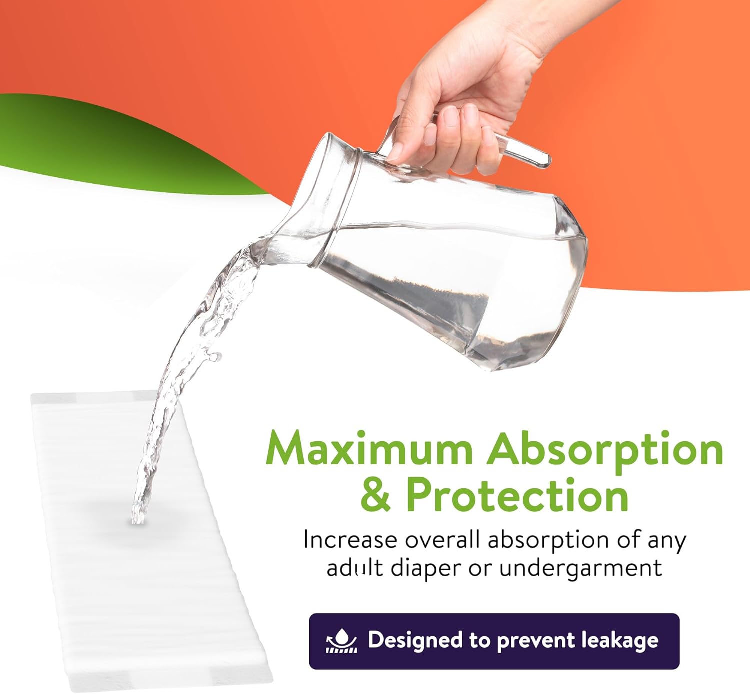 Adhesive Strip Keeps Pad In Place - Simple To Use: Simply Peel Off Adhesive Strip On Back Of Diaper Liner And Secure To The Inside Of The Diaper Or Pull Up And Transform Any Diaper In To A Super Diaper - Overnight Incontinence Pads For Women And Men
