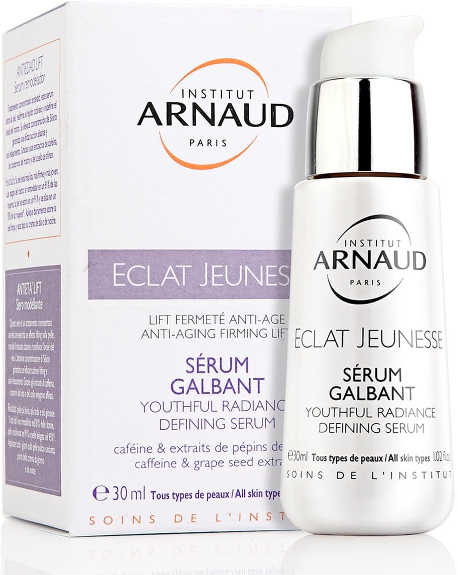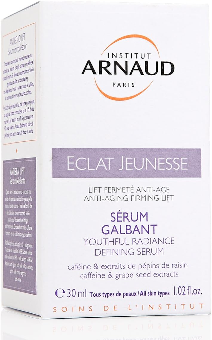 Product Description Anti-aging preventative, facial skincare programme, rejuvinating treatment for a radient complexion. Defining serum with caffine and grape seed extract. Institut Arnaud are a simple, chic, elegant, refined, professional and reasurring skincare brand with 65 years of cosmetic experience. Box Contains 1 x Youthful Radiance - Defining Serum,Institut Arnaud,YOUTHFUL RADIANCE - DEFINING SERUM,Eclat Jeunesse,25-40 year olds,30ml,Item display weight: 0.26 kilograms
