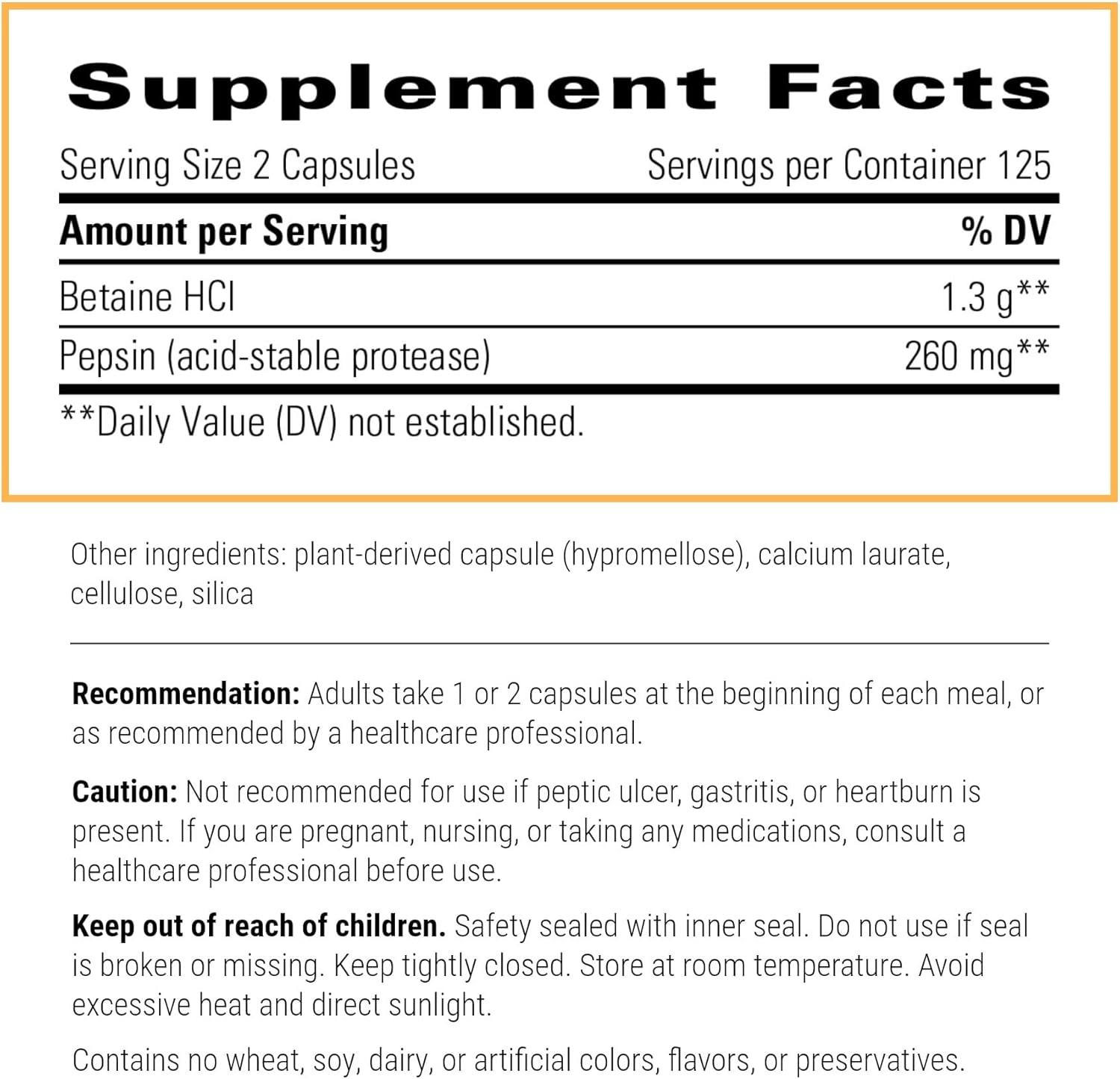 Betaine Hcl Provides A Combination Of Betaine Hydrochloride And Pepsin That Works With The Body To Support Healthy Stomach Acidity, Gastric Function, And Protein Digestion