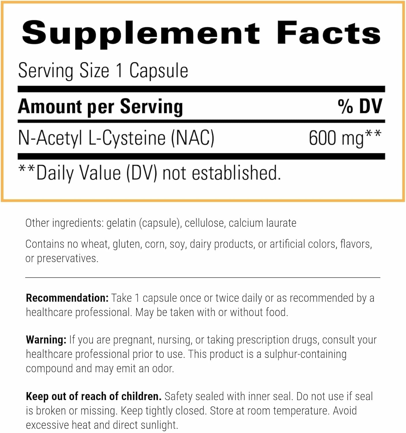 Gluten-Free & Dairy-Free: NAC contains no wheat, gluten, corn, soy, dairy products, or artificial colors, flavors, or preservatives