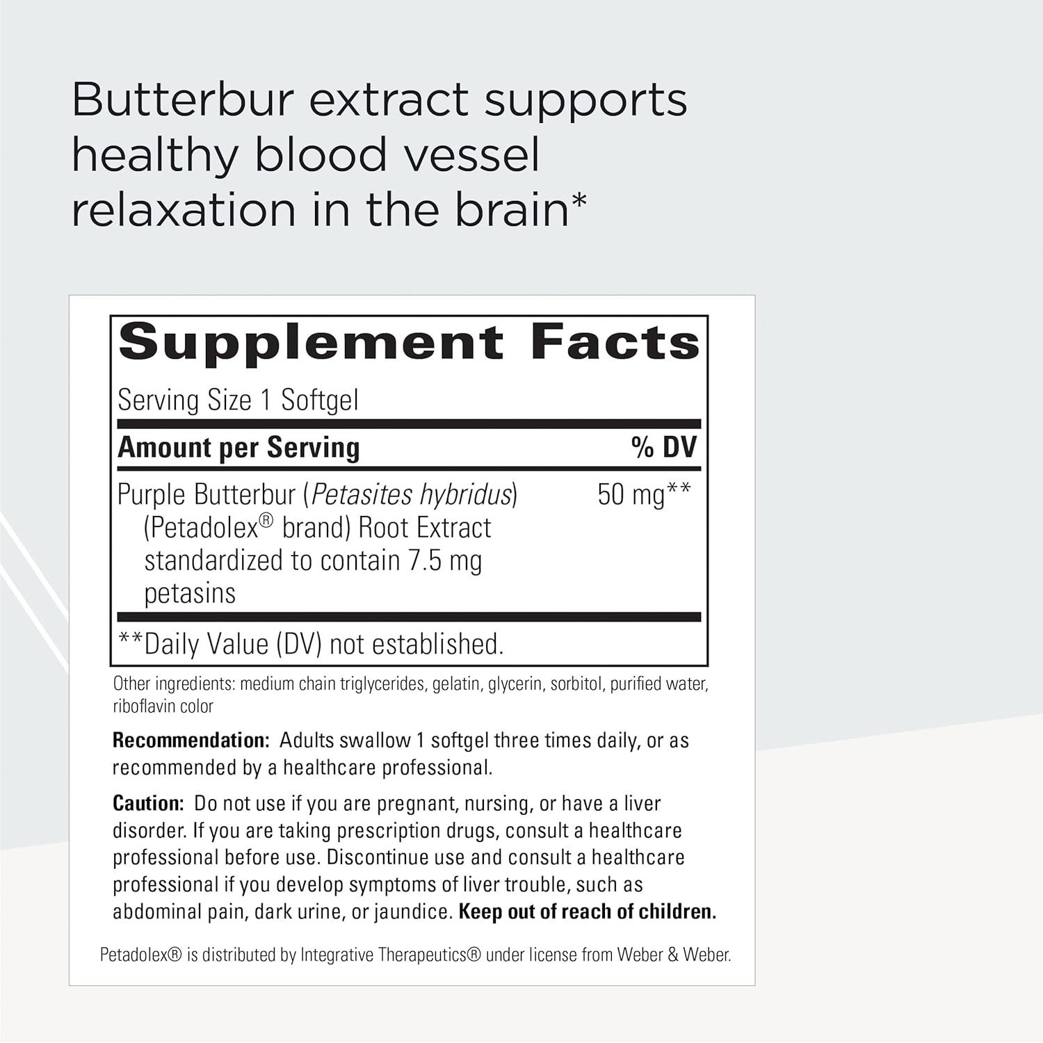 Integrative Therapeutics Petadolex - Purple Butterbur Extract - Dietary Supplement To Support Healthy Blood Vessel Function In The Brain* - Gluten-Free & Dairy-Free Brain Health Support - 60 Softgels