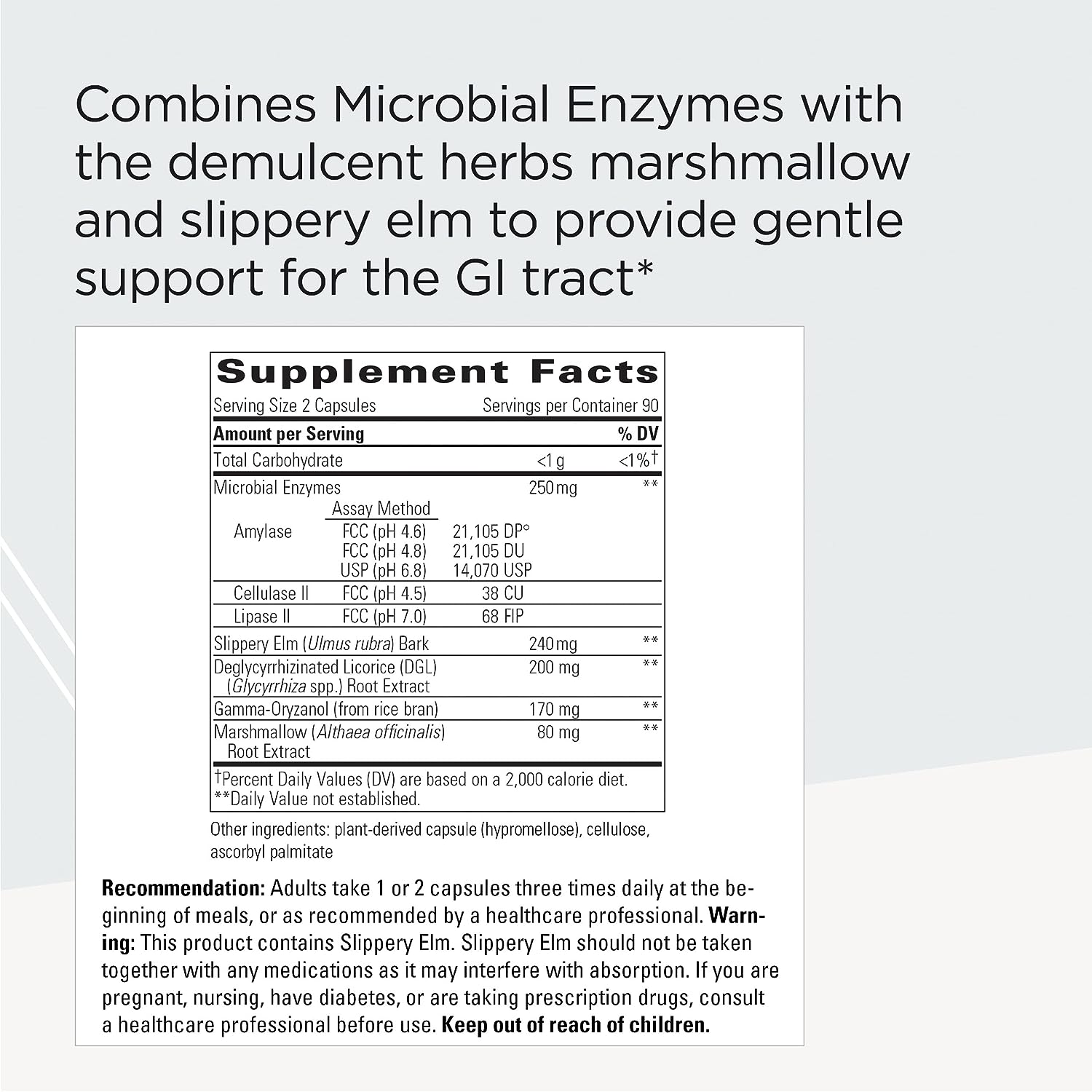 BULLET POINTS : 1 > Marshmallow and slippery elm combined with microbial digestive enzymes, licorice root extract, and gamma-oryzanol provide support for the GI tract