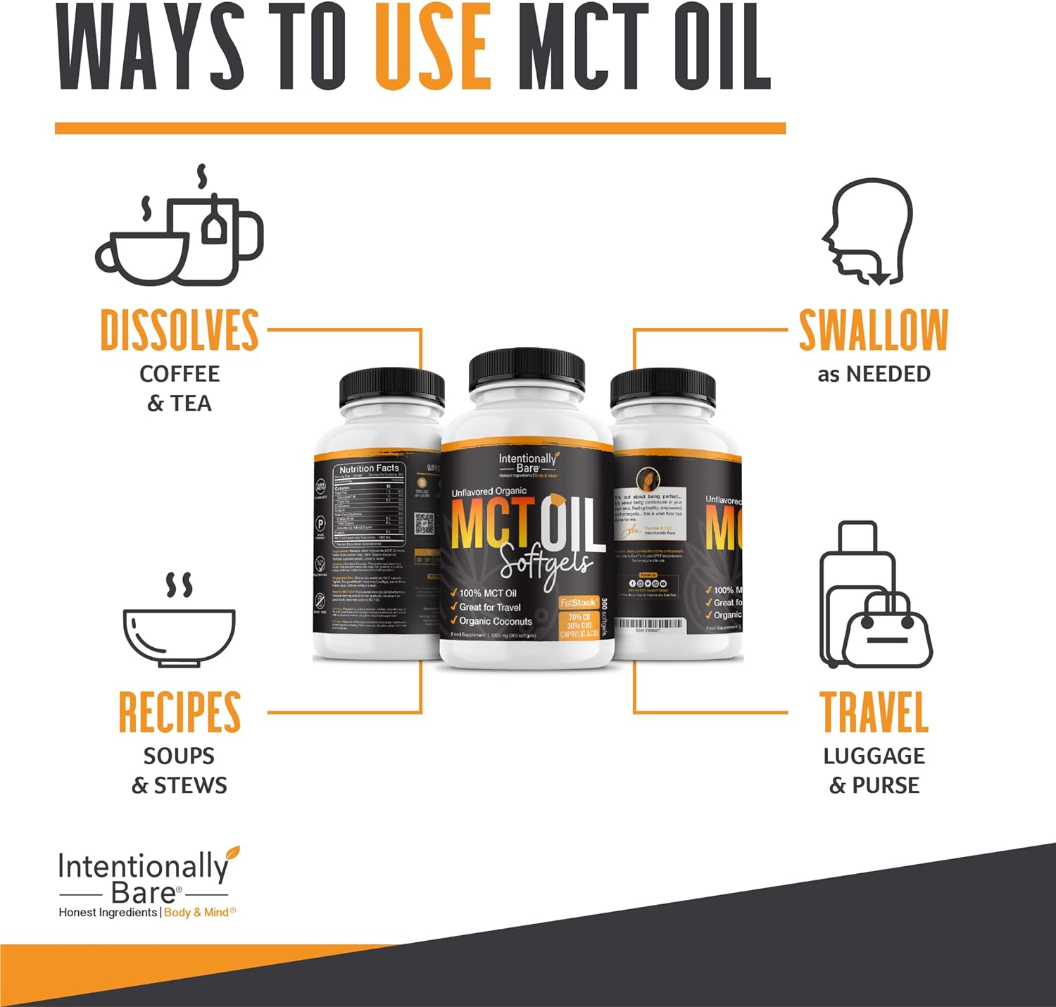Intentionally Bare Organic Mct Oil Capsules - 70% C8 Mct Oil & 30% C10 Mct Capsules Unflavored For Keto Low Carb And Paleo Diet - Mct Oil C8 & C10 For Energy Mood & Focus - Non-Gmo 300 Softgels