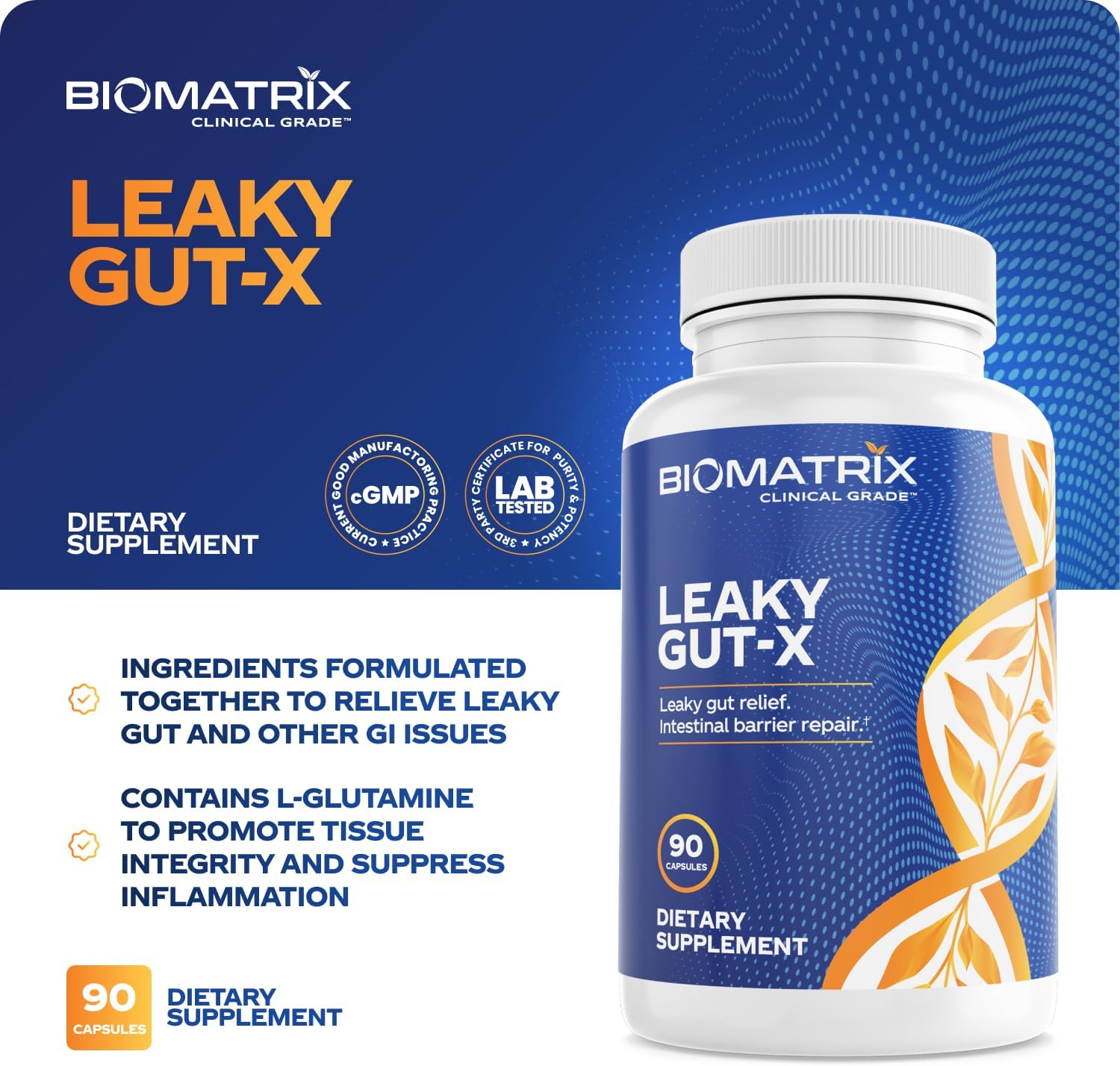 About this item STRENGTHEN YOUR INTESTINAL BARRIER β The small intestine lining is a critical barrier. Itβs your first-line of immune defense. It prevents harmful substances β like food antigens (gluten e.g.) and invasive organisms β from getting into your system and becoming systemic. It also allows nutrients to be absorbed and put to work to strengthen your body. The natural aging process, and numerous health conditions such as food intolerances, cause the barrier to become weak, resulting in a leaky gut. GI RELIEF, ILLNESS PREVENTION β When you take Leaky Gut-X, you are not only relieving symptoms, especially those associated with IBS and constipation, but you are also repairing the mucous layer of the intestinal barrier. This helps your body avoid a variety of chronic health problems that result in malabsorption and antigen penetration through the barrier. SIBO-FRIENDLY FORMULA β Leaky Gut-X is SIBO-friendly, while many competing brands claiming to heal the gut actually contain ingredients known to exacerbate SIBO, such as slippery elm, marshmallow, and DGL. BOTANICAL SYNERGY BLEND β Soothe your mucosal barrier with potent botanicals that help to balance inflammation and promote healthy mucus production. Support Mucosa includes Quercetin, Catβs Claw Bark, Hawthorn Leaf, Milk Thistle, Eleuthero Root, Turmeric Root, and Bromelain. All these ingredients have been extensively studied for their ability to heal leaky gut. L-GLUTAMINE POWERED β L-Glutamine is a key amino acid important for the normal growth and maintenance of the cells in the intestine. Besides having a substantial regenerative effect on distressed mucosal barriers, it also acts as a major source of energy for proliferation and differentiation of intestinal epithelial cells. This helps speed repair and regeneration of the inflamed barrier. βΊ See more product details,STRENGTHEN YOUR INTESTINAL BARRIER β The small intestine lining is a critical barrier. Itβs your first-line of immune defense. It prevents harmful substances β like food antigens (gluten e.g.) and invasive organisms β from getting into your system and becoming systemic. It also allows nutrients to be absorbed and put to work to strengthen your body. The natural aging process, and numerous health conditions such as food intolerances, cause the barrier to become weak, resulting in a leaky gut,GI RELIEF, ILLNESS PREVENTION β When you take Leaky Gut-X, you are not only relieving symptoms, especially those associated with IBS and constipation, but you are also repairing the mucous layer of the intestinal barrier. This helps your body avoid a variety of chronic health problems that result in malabsorption and antigen penetration through the barrier,SIBO-FRIENDLY FORMULA β Leaky Gut-X is SIBO-friendly, while many competing brands claiming to heal the gut actually contain ingredients known to exacerbate SIBO, such as slippery elm, marshmallow, and DGL,BOTANICAL SYNERGY BLEND β Soothe your mucosal barrier with potent botanicals that help to balance inflammation and promote healthy mucus production. Support Mucosa includes Quercetin, Catβs Claw Bark, Hawthorn Leaf, Milk Thistle, Eleuthero Root, Turmeric Root, and Bromelain. All these ingredients have been extensively studied for their ability to heal leaky gut,L-GLUTAMINE POWERED β L-Glutamine is a key amino acid important for the normal growth and maintenance of the cells in the intestine. Besides having a substantial regenerative effect on distressed mucosal barriers, it also acts as a major source of energy for proliferation and differentiation of intestinal epithelial cells. This helps speed repair and regeneration of the inflamed barrier